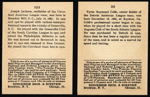 1915 E145 Cracker Jack #30 Ty Cobb and #103 Joe Jackson