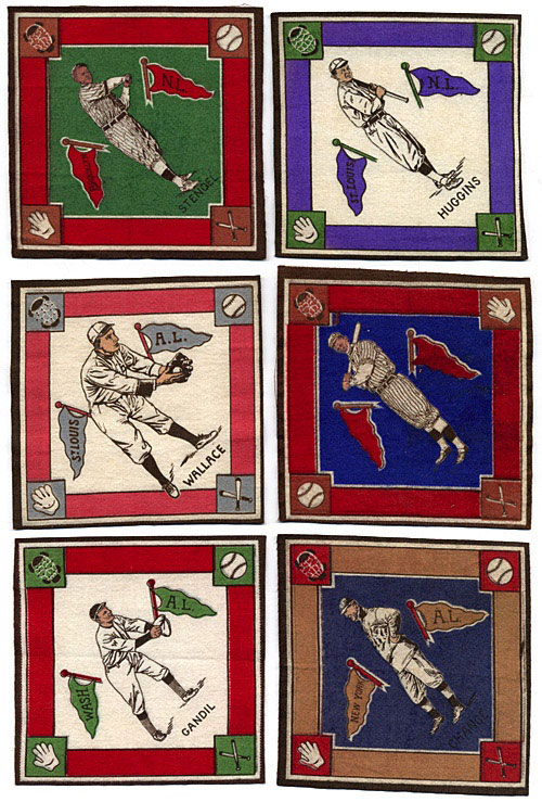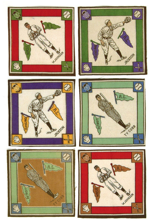 Presented is one of the finest sets of B18s blankets ever assembled. This is a stunning complete set of 181 different B18 blankets: 98% range from Ex-Mt to Nr/Mt-Mt, 2% Vg-Ex to Ex. This remarkable collection is missing only four printing variation blankets to be a complete master set (not including the seventeen almost impossible-to-find red-infield variations, which are so rare that guides do not consider them a part of the total set count). Because they are not traditional cards, and are not yet graded by PSA, B18s have been somewhat overlooked by many collectors. They will have their day. B18s represent one of the most outstanding values of all baseball tobacco issues. They are also one of the most interesting and difficult of all tobacco sets to complete. The set includes few Hall of Famers, but many scarcities and rarities. The assembly of this set was the result of a tremendous investment in time and energy, and a dedication to collecting that is very rare, over a period of over ten years. B18 sets just don't "turn up," let alone in such extraordinary high-grade. They have to be assembled, one by one. This miracle set was one of the pride and joys of one of the most advanced and meticulous collectors to ever open an American Card Catalog. This set offers a unique opportunity to acquire the finest set of B18s we have ever seen. (And we've seen a lot of B18s.) We cannot imagine how many B18s were considered in its assembly. The four printing-variation blankets missing for a complete master set are as follows: Chance (yellow), Griffith (white/red), O'Neill (red), Shanks (white), plus the seventeen red-infield variations. Included among the 181 B18s in this collection are dozens of the rare and scarce designs and variations. A few of these keys are graded individually as follows: Carey/purple (Nr/Mt), Carey/red (Nr/Mt), Cavanaugh/brown (Ex-Mt), Chance/green (Ex-Mt), Chance/brown (Ex-Mt), Cobb/white (slight o/c, otherwise Nr/Mt-Mt), Cobb/brown (Nr/Mt), Gandil/green (Nr/Mt-Mt), Gandil/brown (Nr/Mt-Mt), Huggins/yellow (overprinted with brown in the upper right, otherwise Ex-Mt), Huggins/purple (Nr/Mt-Mt), Jackson/purple (we detect some very fine threading holes when examined very carefully, almost impossible to see, otherwise Nr/Mt), Jackson/yellow (slightly o/c, otherwise Nr/Mt), W. Johnson/brown (Nr/Mt), W. Johnson/green (Nr/Mt), Maranville/white (Nr/Mt), Maranville/brown (Nr/Mt), Stengel/blue (Ex-Mt), Stengel/green (Nr/Mt), Wallace/purple (Nr/Mt-Mt), Wallace/red (Nr/Mt), Wheat/blue (Ex-Mt), Wheat/green (Ex). This is an almost flawlessly clean, very well centered (centering problems are often a significant issue with B18s), carefully assembled, simply outstanding collection of one of tobacco collecting's most exotic issues, put together over a period of many years by a very advanced and dedicated longtime collector. Accompanied by an original B18 packaging envelope with unbroken packaging strip and never unfolded blanket (Stengel) which shows exactly how these felt tobacco premiums were issued. Total 182 blankets. Reserve $2,000. Estimate $4,000/$8,000. SOLD FOR $17,400.00