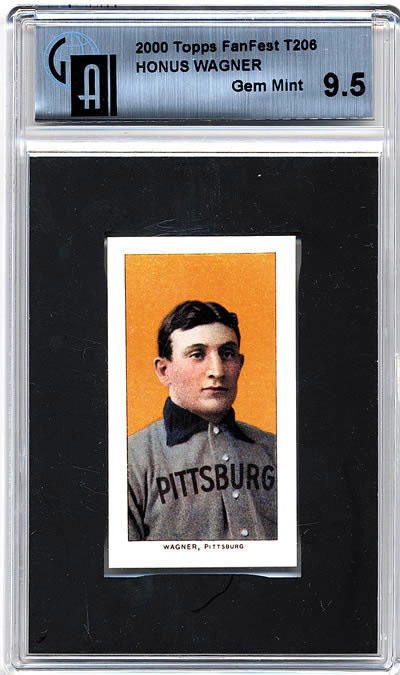 Group of 50 Topps/eBay T206 Wagner advertising cards, printed by Topps, and distributed at the Topps/eBay booth at the July 2000 Fanfest convention in Atlanta, to promote the historic July 2000 auction of the most valuable baseball card in the world - "The Gretzky-McNall Wagner." Twenty-five of these advertising cards have been encapsulated and graded by GAI: Twenty-two are graded GEM MINT 9.5 and three are Graded MINT 9. The 25 ungraded examples are all in Mint condition. Total 50 cards, issued by Topps and eBay to advertise and commemorate the sale of the world's most valuable card. Reserve $100. Estimate $200/$400.