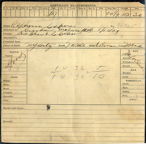 1929 Al Capone Signed Official Police Fingerprint Booking Card