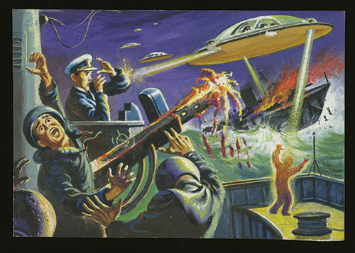 1962 Topps "Mars Attacks" Original Artwork for Card #6 Burning Navy Ships