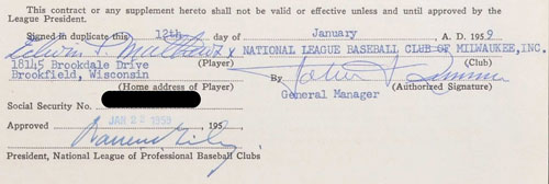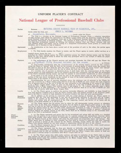 1958 Eddie Mathews Signed Milwaukee Braves Contract