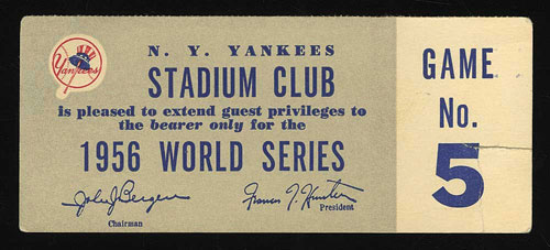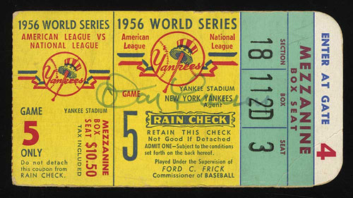 1956 New York Yankees World Series Game 5 Ticket Stub - Don Larsen's Perfect Game - Signed by Larsen!