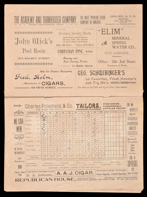 1901 Milwaukee (vs. Washington) Program - American League Inaugural Season - Extreme Rarity!