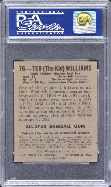 1948-1949 Leaf #76 Ted Williams PSA NM 7 - Pink Background Variation