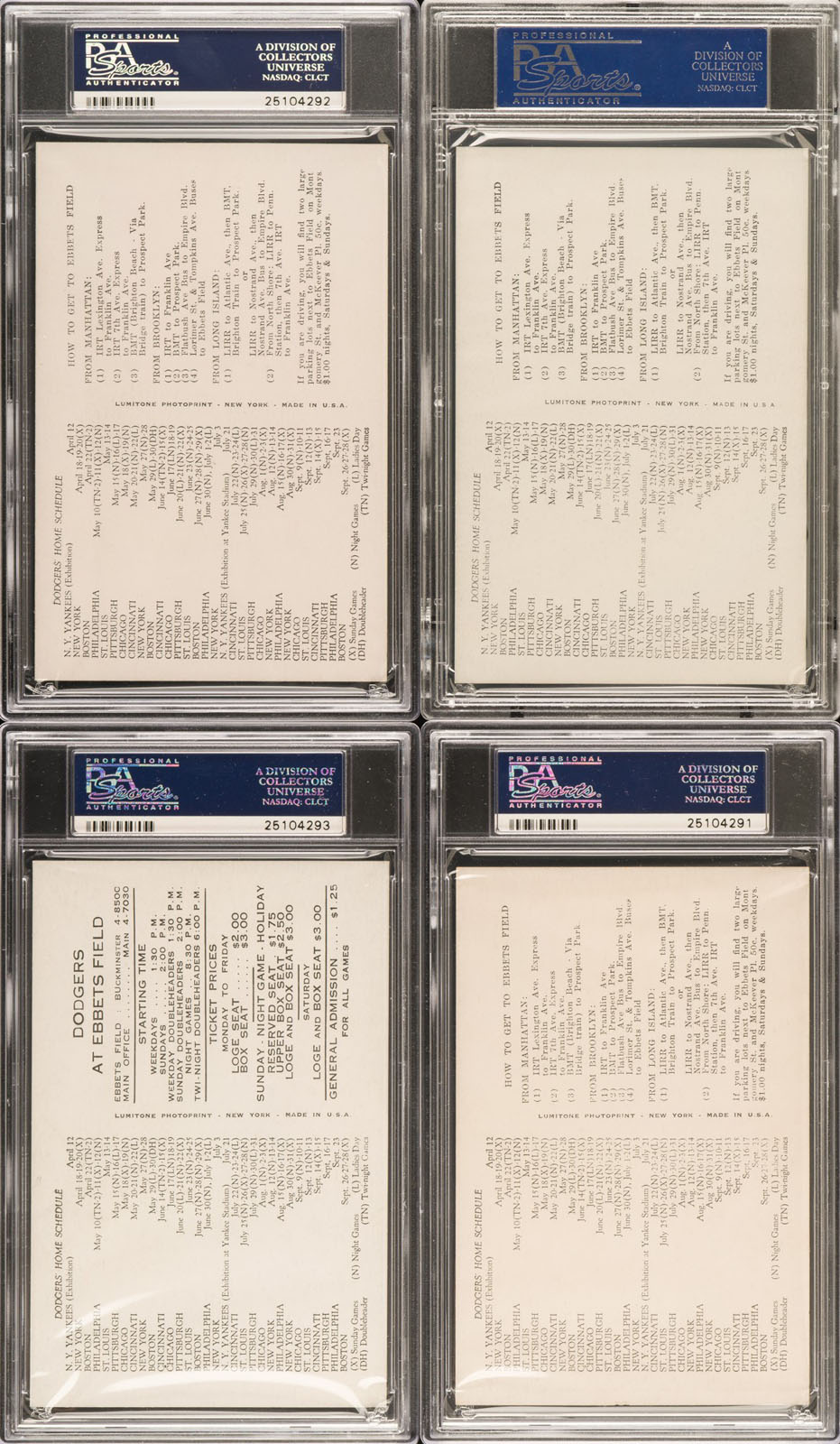 1952 Brooklyn Dodgers Schedule Cards PSA-Graded Complete Set (4) with Jackie Robinson
