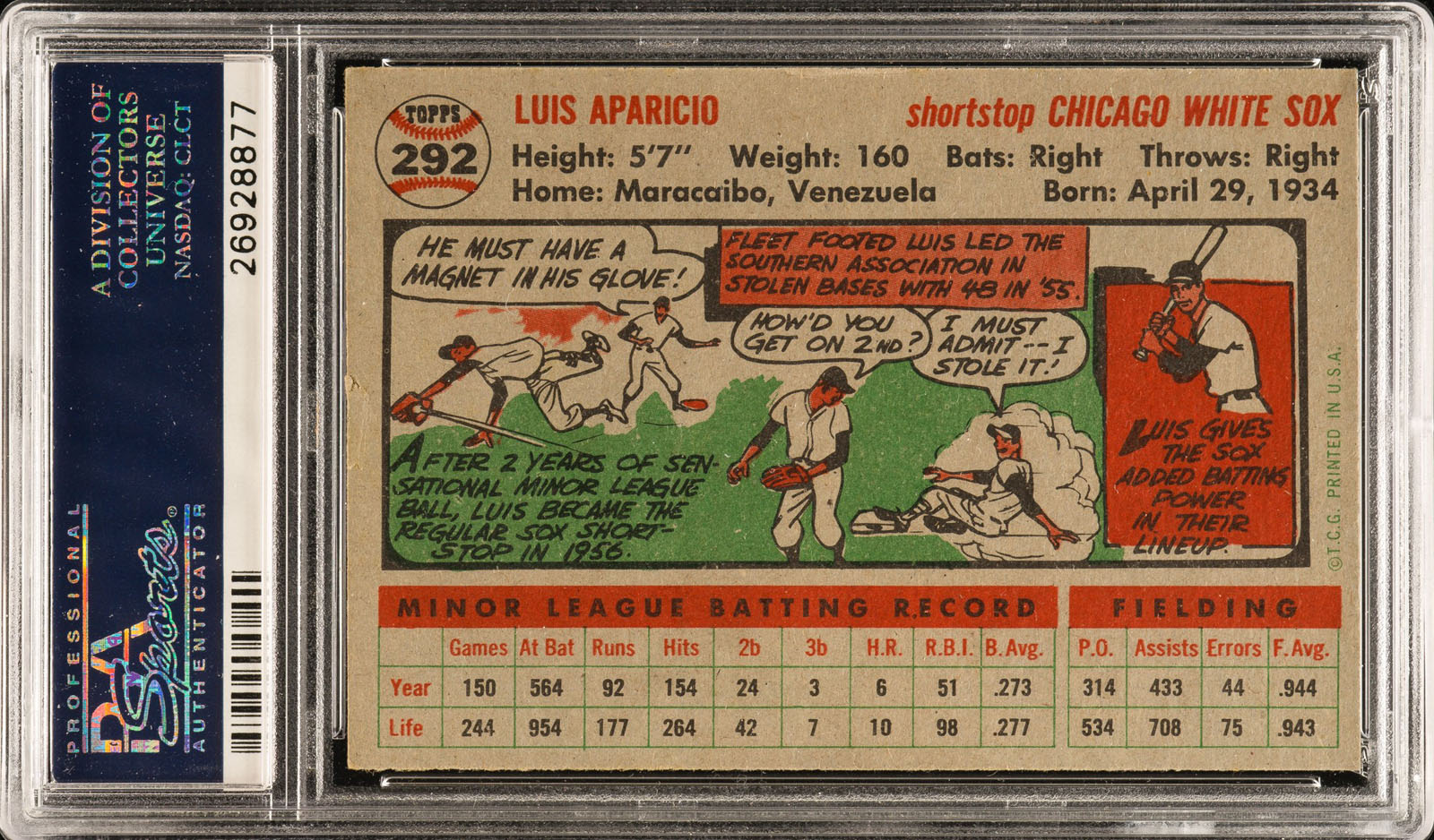 Signed 1956 Topps #292 Luis Aparicio Rookie PSA/DNA GEM MINT 10