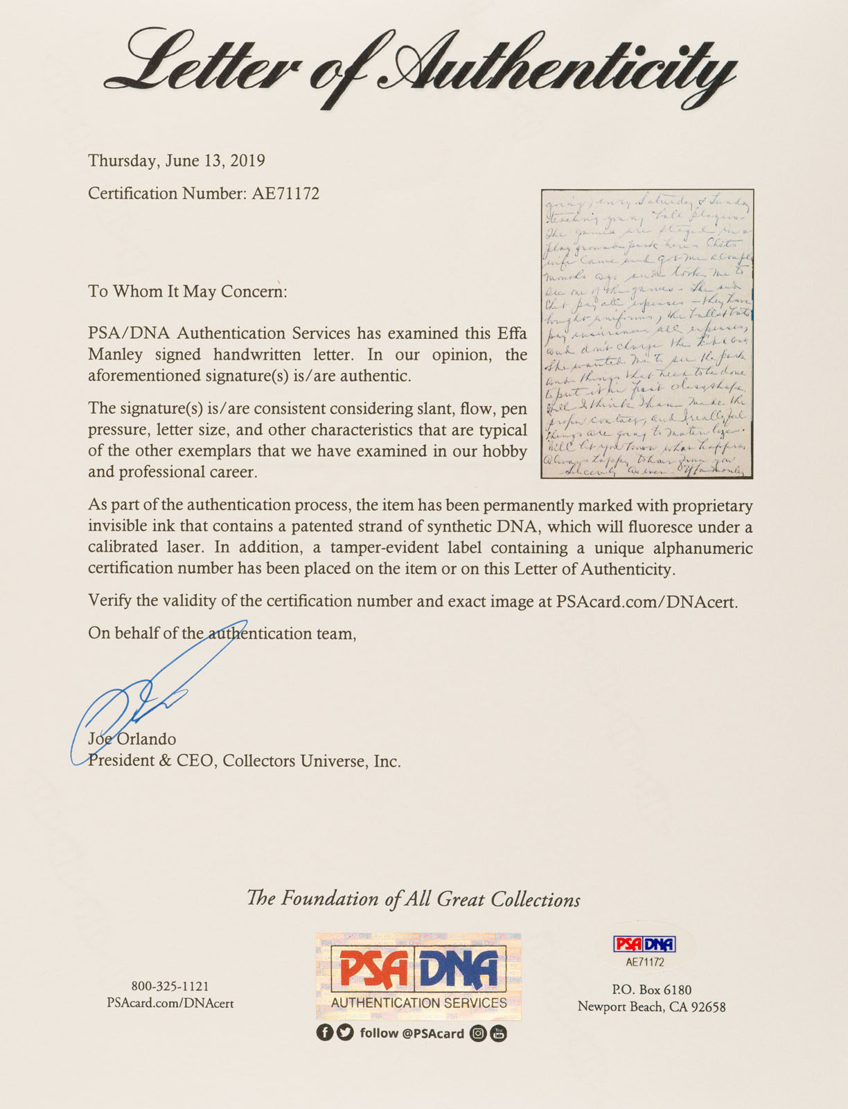 1978 Effa Manley Handwritten Letter - PSA/DNA