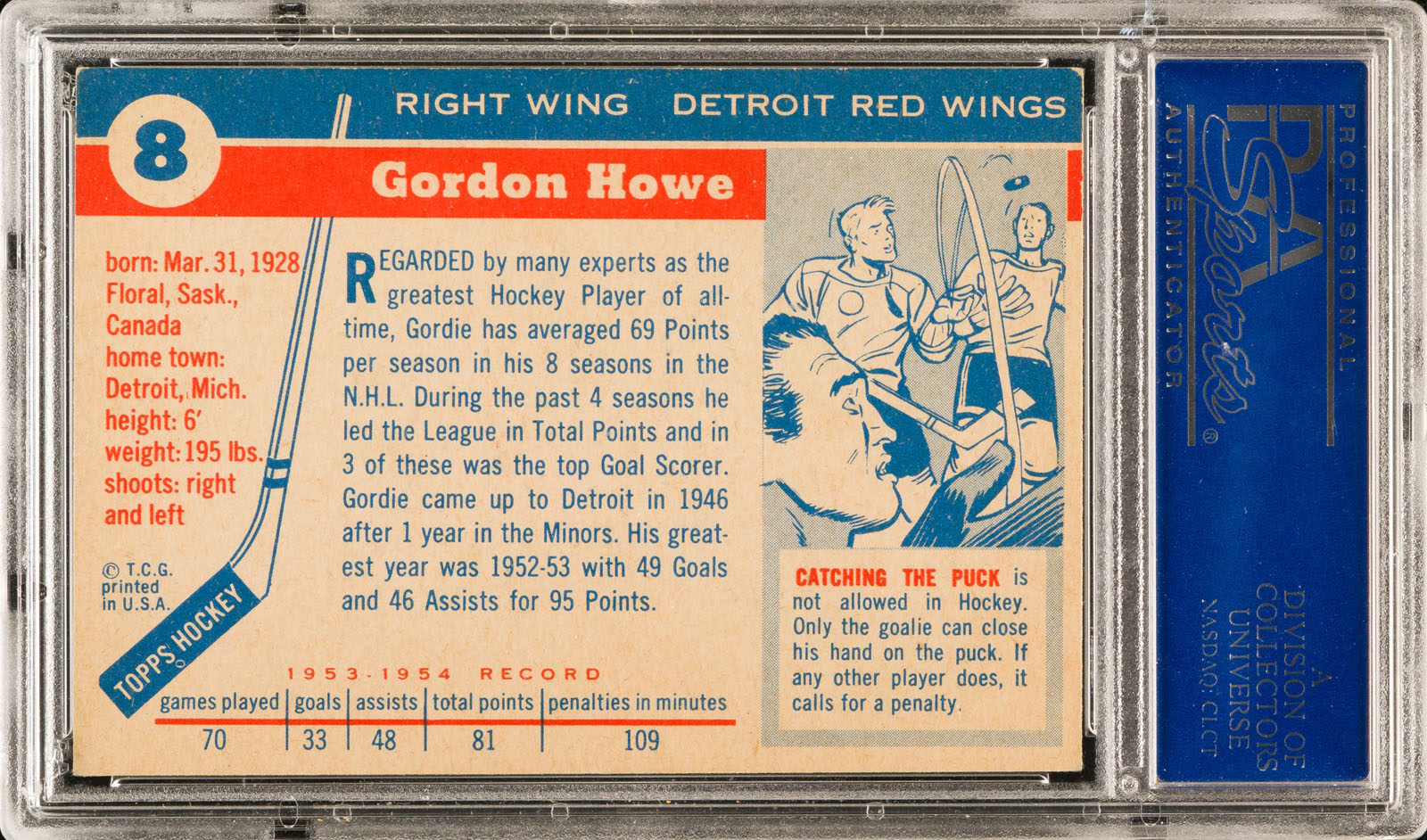 1954-1955 Topps Hockey #8 Gordie Howe PSA EX-MT 6