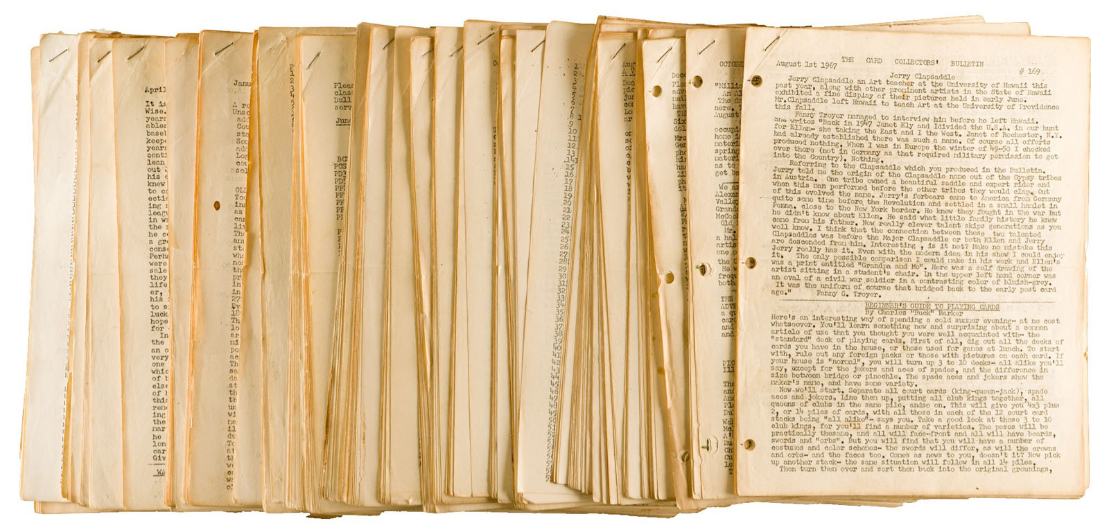 3) The Card Collectors' Bulletin (38 issues): #169-191, 193-197, 199, 201-207, 209, and 185 Supplemental. Also included is a small group of additional incomplete issues and catalog addition sheets to Jefferson Burdick's The American Card Catalog (ACC) dating from the early to mid-1960s.