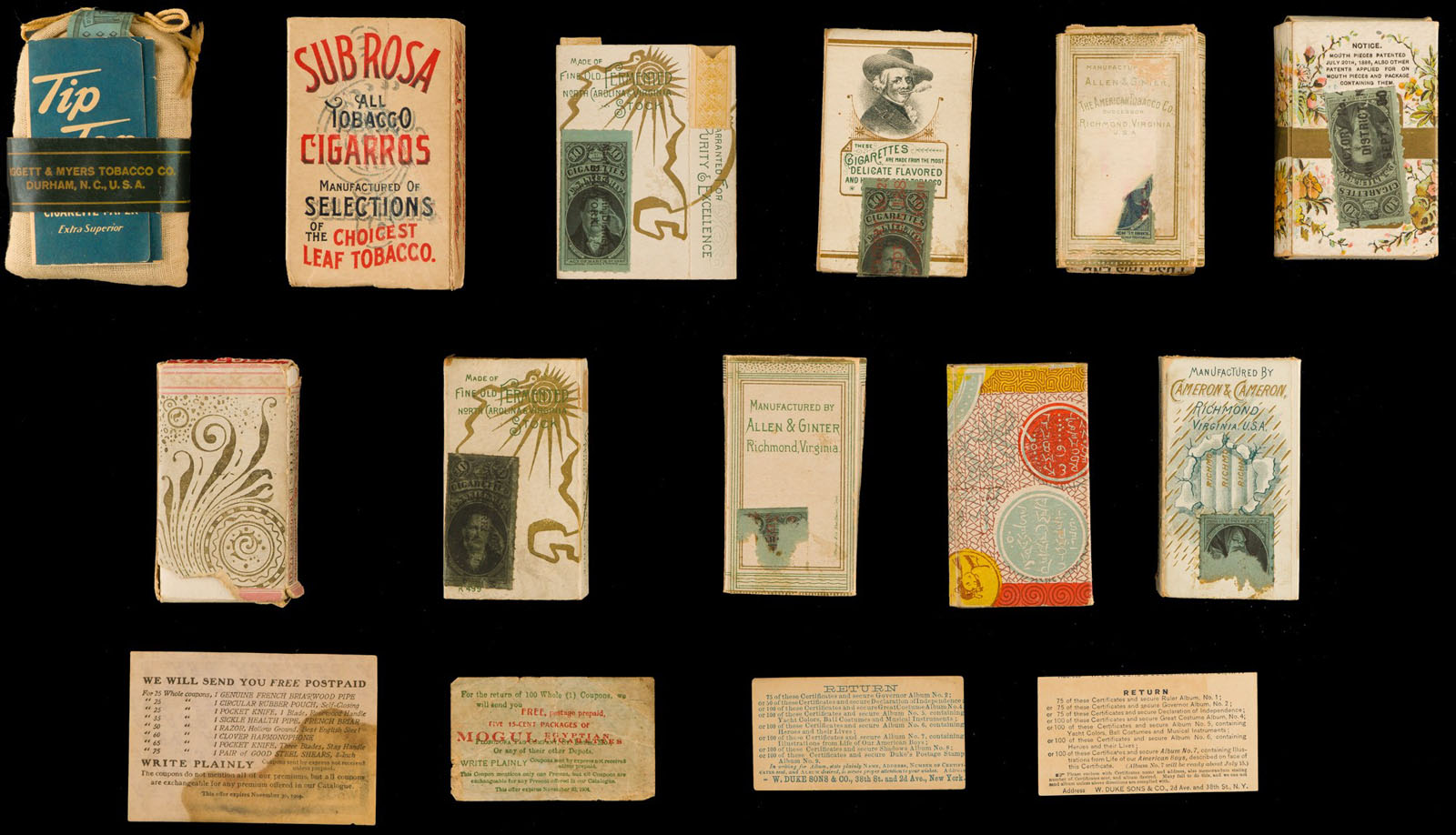 19th Century Nonsports Brand Cigarette Box and Coupon Collection (15) Including Duke's, Kimballs, Virginia Brights, Sub Rosa, Creole, and Richmond