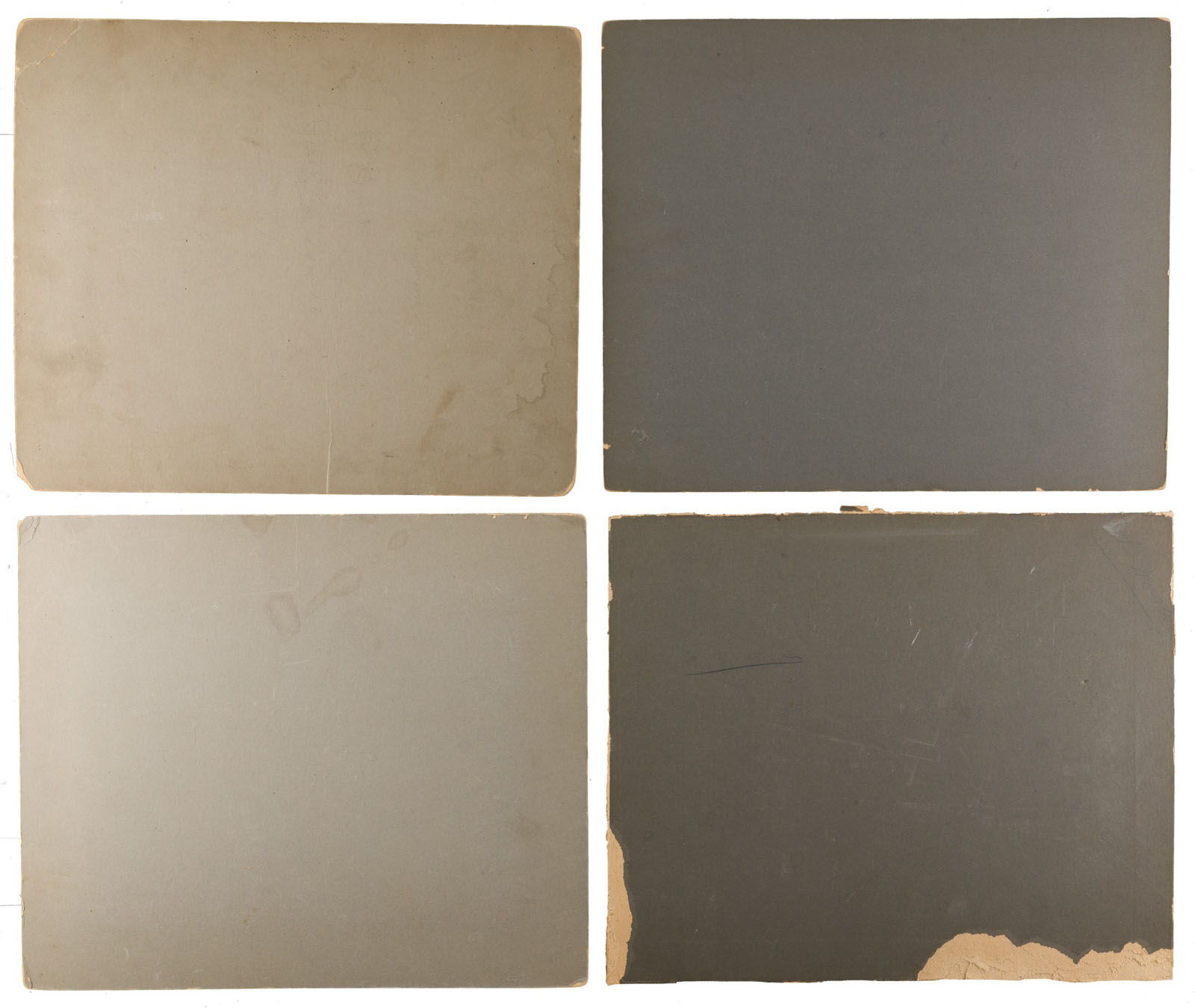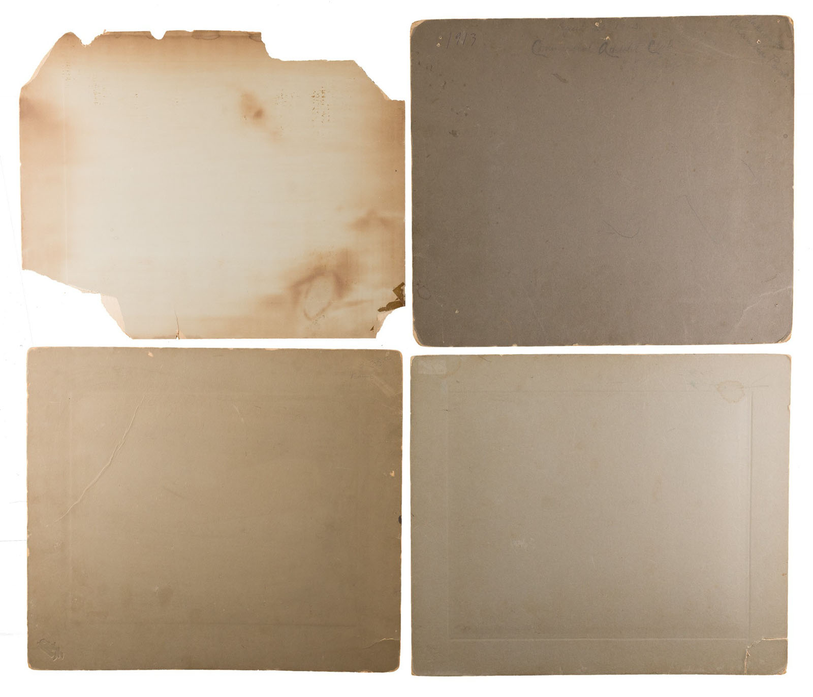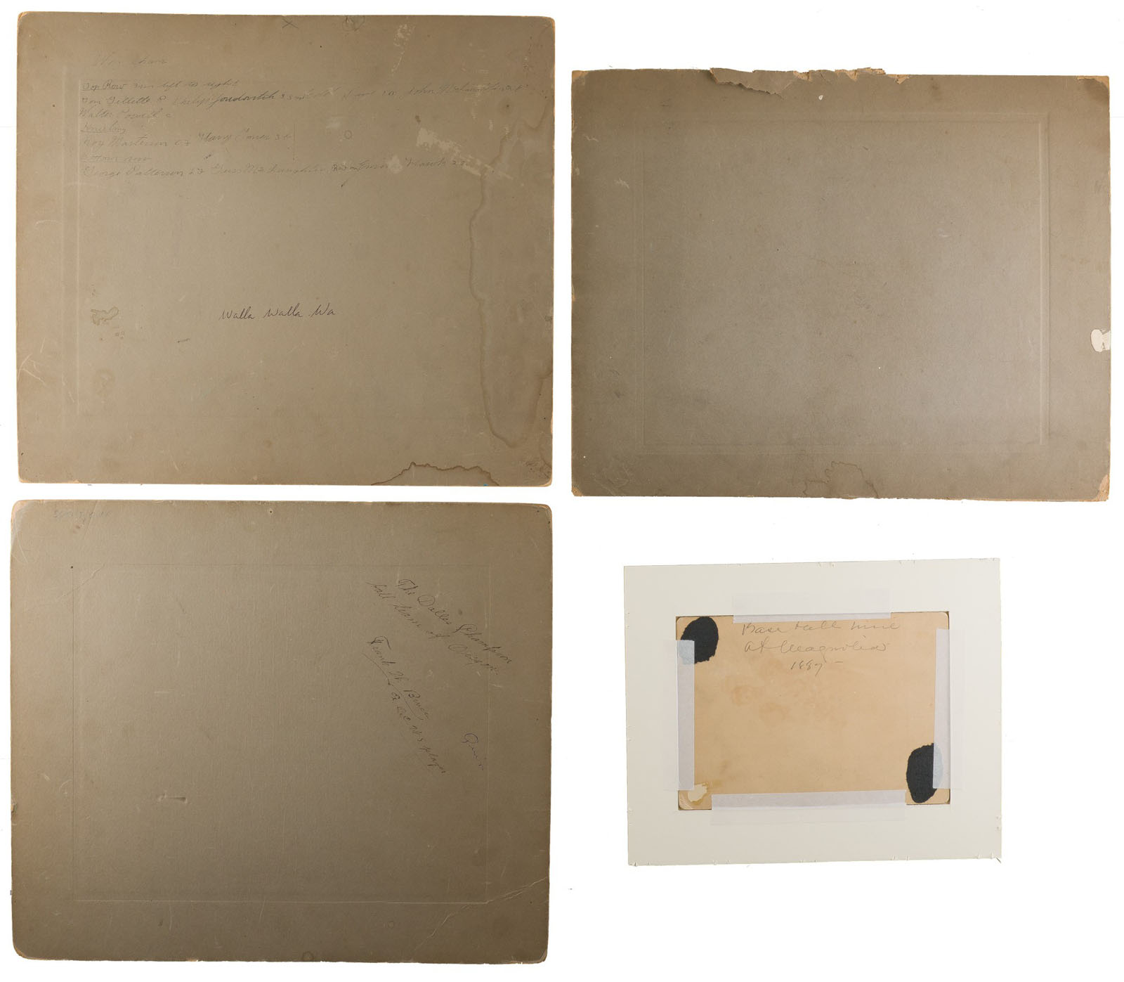 Collection of 25 vintage photographs, each capturing a different baseball team. While a few of these photos appear to date to the late nineteenth century, most are from the early 1900s. Like most photos of this type, not much is known about the clubs or players pictured, except that nearly all originate from the Pacific Northwest. A number of photos have handwritten team or player identifications on the reverse, but all appear to be town, semi-pro, or school teams. Twenty-three of the photos are affixed to heavy mounts. Among the most interesting scenes included here are a photo picturing a number of players congregating on the field, including an African-American player, a team posing with a trained bear, and a high-school team posing in studio, where one can clearly see a beautiful example of a Spalding "Wagon Tongue" bat in the hands of one of the players. The majority of the photos are in Excellent condition overall, but many of the mounts display significant flaws, including chipping, tears, and light staining. Sizes range from 6.5 x 5.5 inches to 13.75 x 12 inches (including the mounts). Total 25 photographs. Reserve $200. Estimate (open).