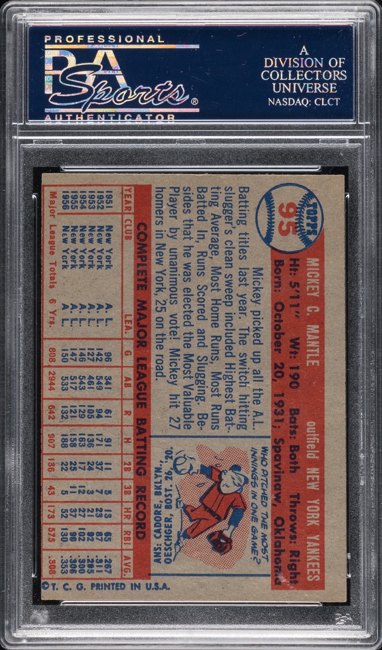 1957 Topps #95 Mickey Mantle PSA NM 7 (MC)