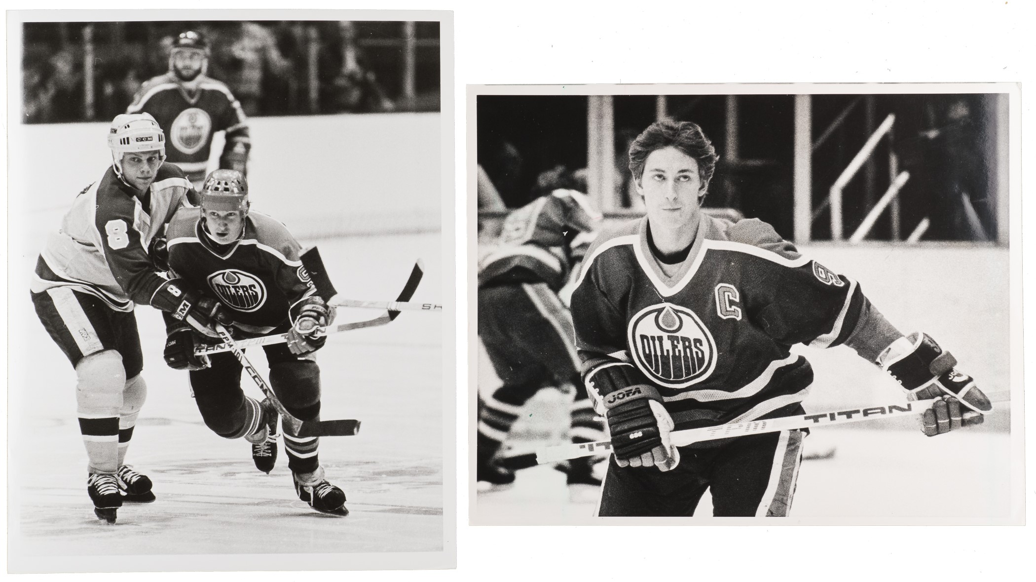 Pair of Circa 1983 Wayne Gretzky Edmonton Oilers Hockey Original Photographs