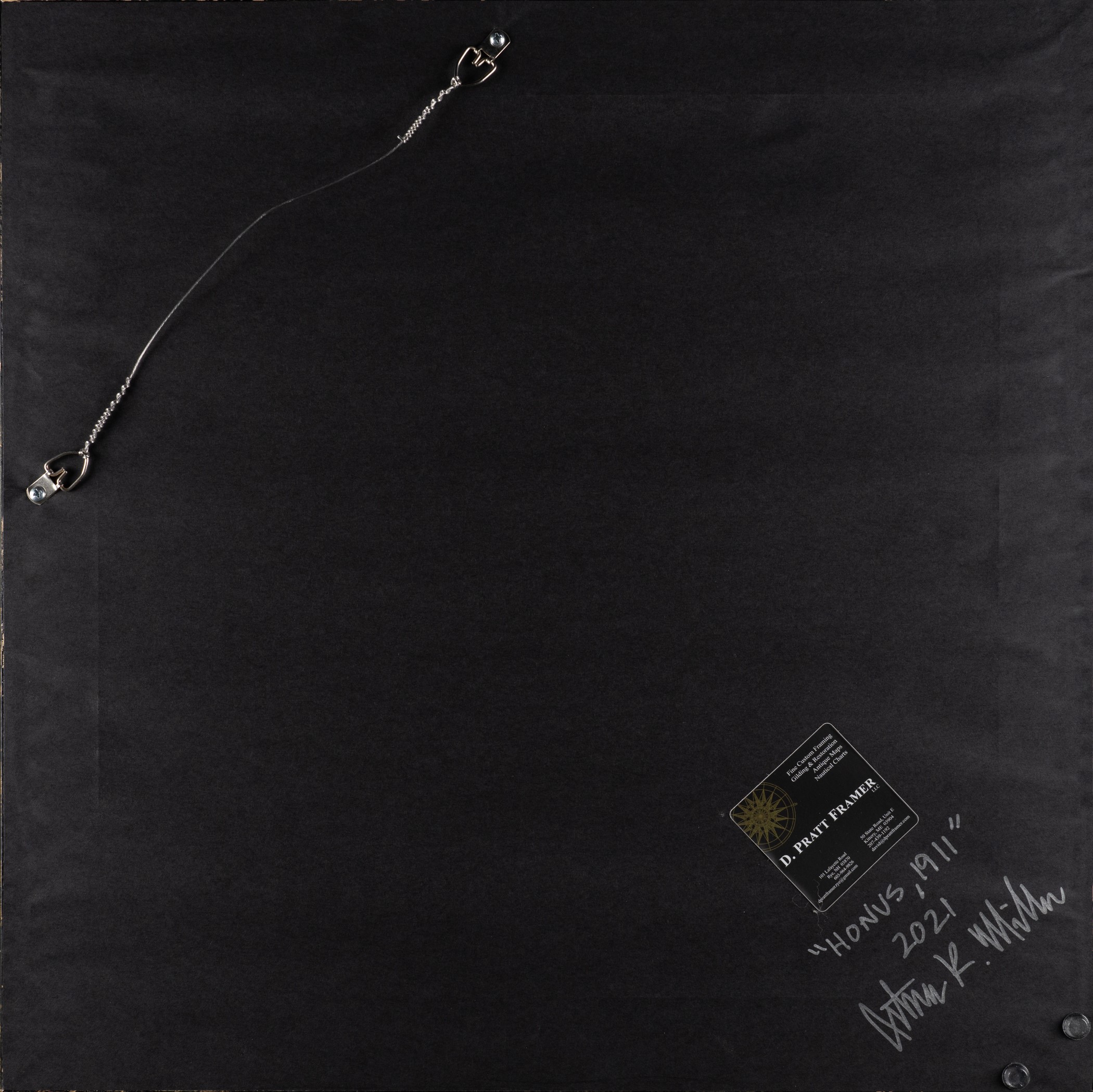 Original mixed media on canvas (mounted to board) painting of Honus Wagner, titled Honus, 1911, by renowned sports artist Arthur K. Miller. Signed by the artist in the upper-right corner. Signed again and dated ("2021") by Miller on the reverse of the frame. The facial study pictures Wagner in his Pirates home uniform with cap. Arthur K. Miller is an award-winning portrait artist specializing in historical sports figures and Pop Culture icons. His work has been exhibited and collected internationally for over 30 years, including an unprecedented five-year solo exhibition at the National Baseball Hall of Fame & Museum. His exacting portraits are featured in many permanent collections, including those of the Baseball Hall of Fame, the New York Historical Society and the Louisville Slugger Museum. Miller’s sports portraits also regularly appear on the cover of the Sports Market Report (SMR). Mint condition. 15.5 x 15.5 inches. Framed to total dimensions of 20 x 20 inches. The size/weight of this item requires that there will be an additional shipping charge for this lot. Reserve $300.