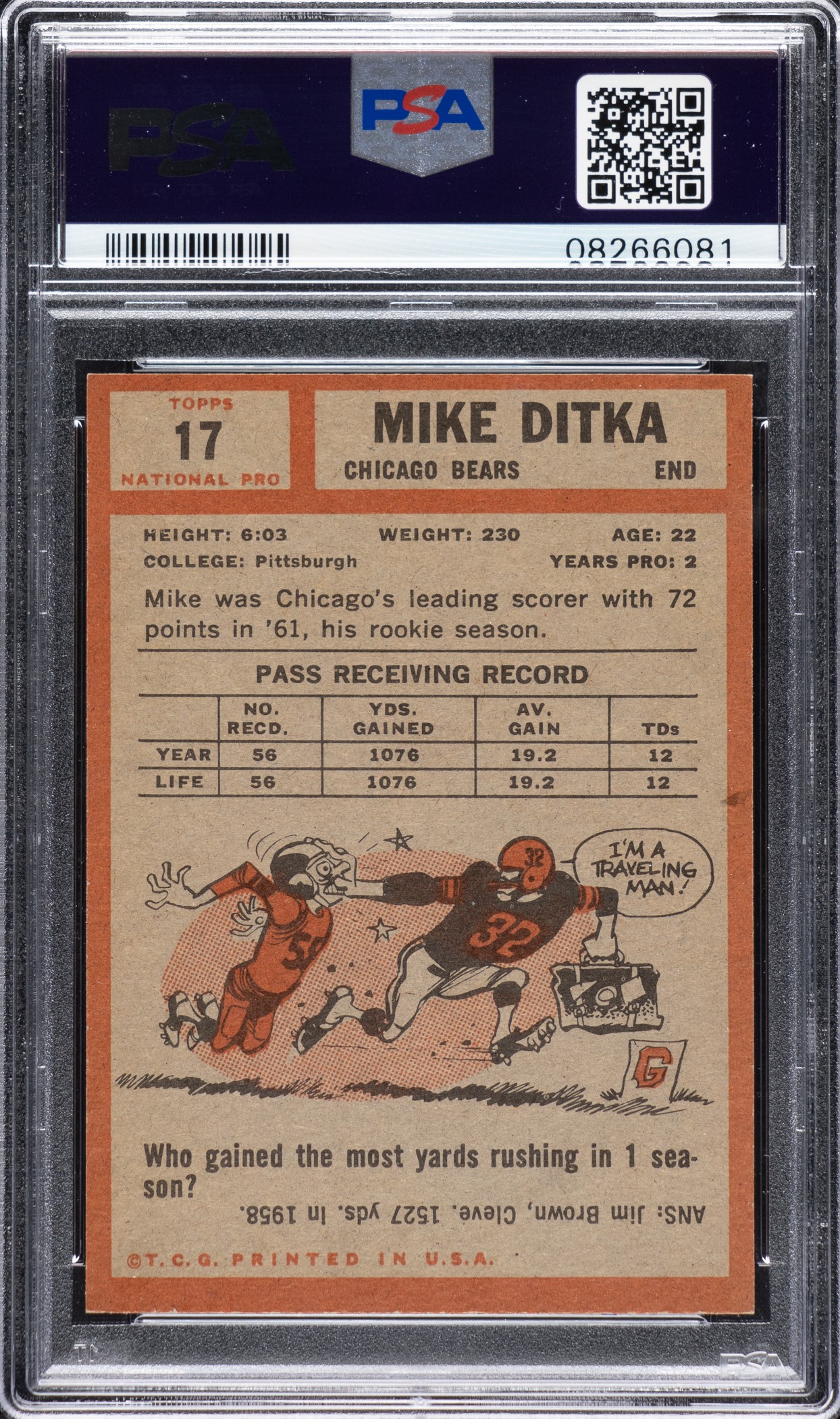 1962 Topps Football #17 Mike Ditka Rookie PSA NM 7