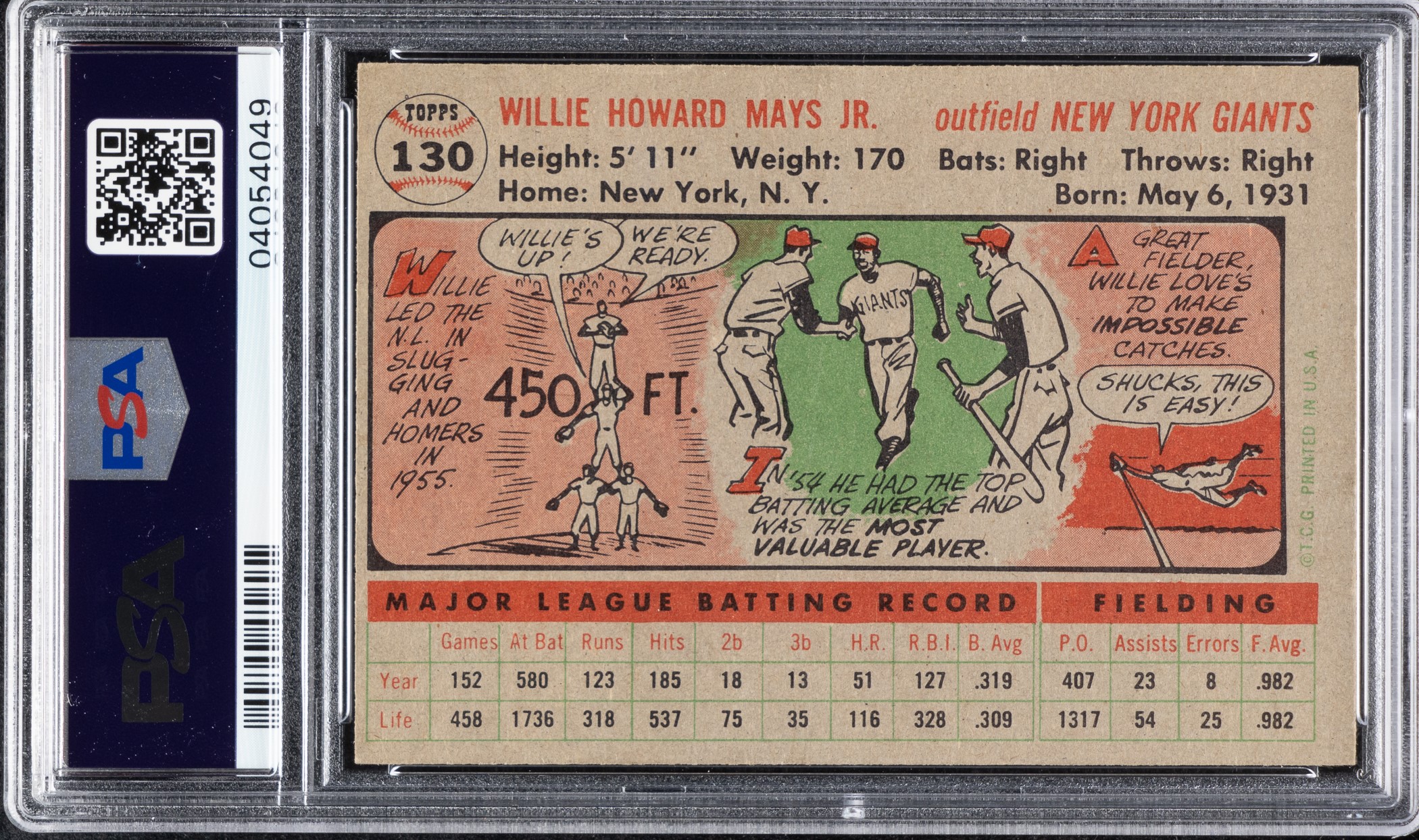 1956 Topps #130 Willie Mays Gray Back PSA NM-MT 8