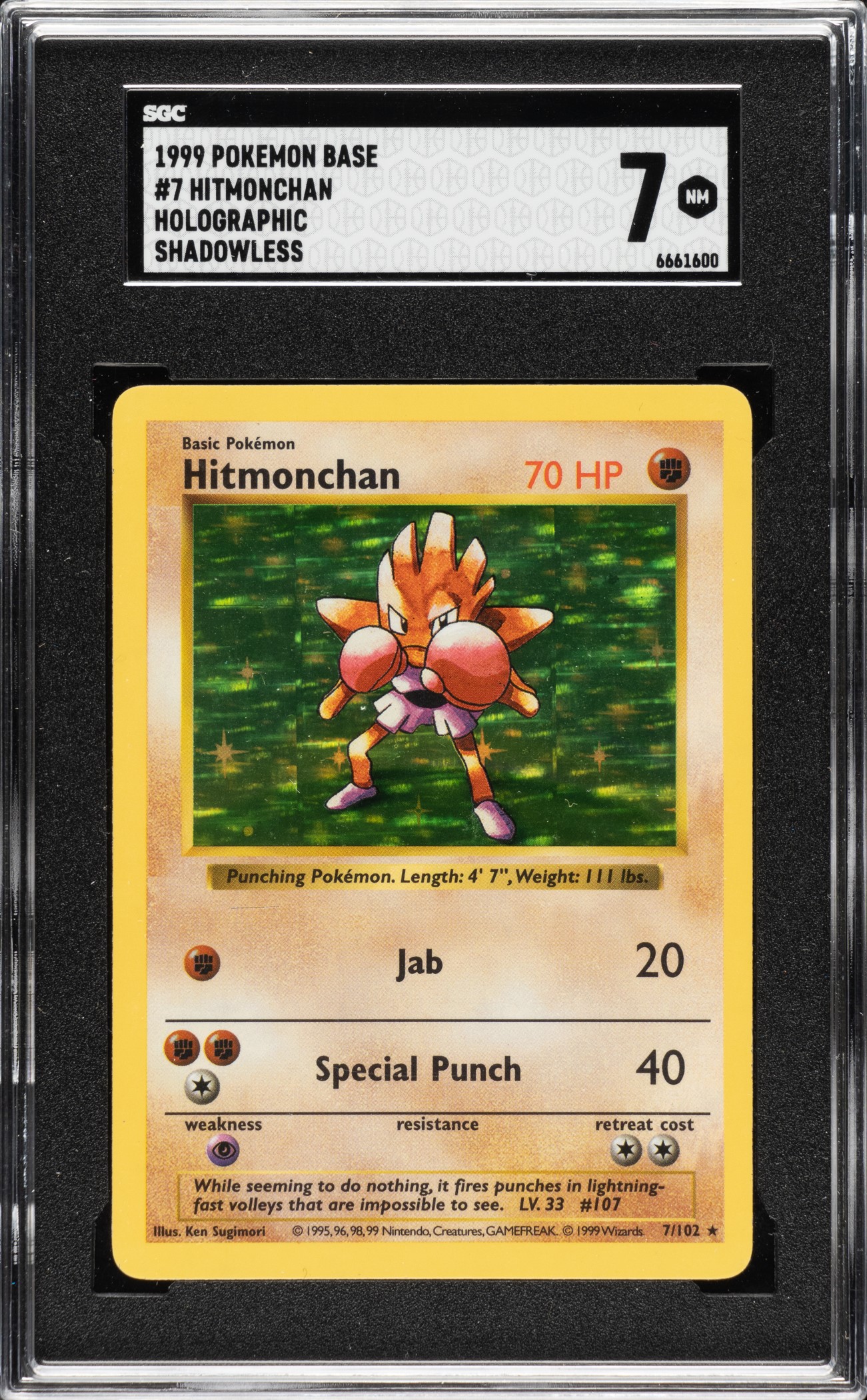 1999 Pokemon Base Set Shadowless #7 Hitmonchan Holographic SGC NM 7