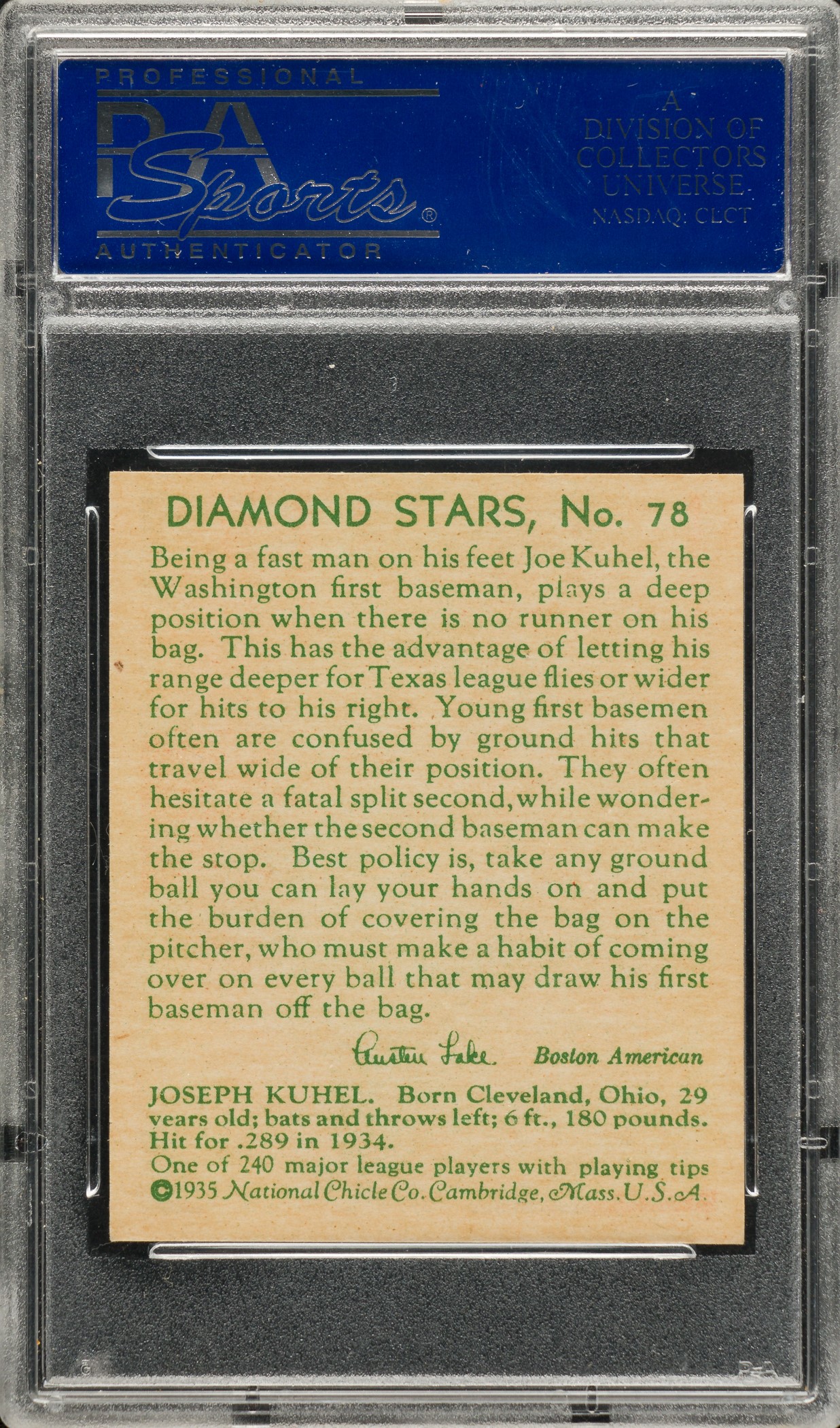 1934-1936 R327 Diamond Stars #78 Joe Kuhel Green Back PSA NM-MT 8