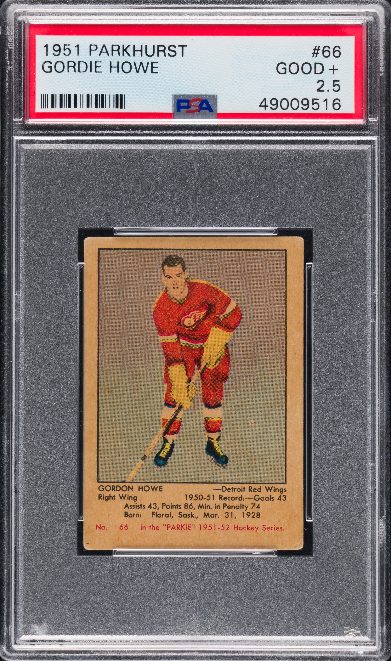 1951-1952 Parkhurst Hockey #66 Gordie Howe Rookie PSA GOOD+ 2.5