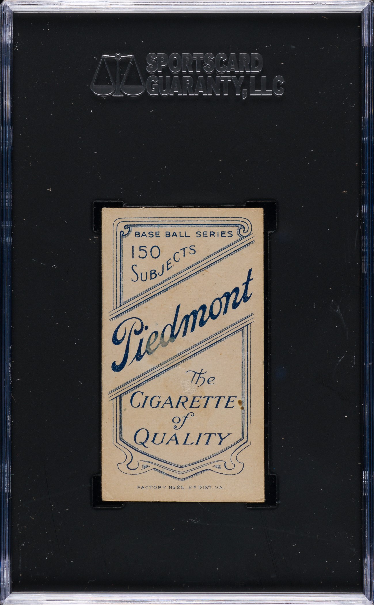 Graded GOOD 2 by SGC. Presented is an extremely attractive example of the famous T206 Magie error card. At first glance, the offered card presents Vg-Ex overall, but closer examination reveals several minor condition flaws, including moderate creasing in the lower left portion of the card. The front is centered to the top, with bold colors and a crisp image. The Piedmont 150 reverse is boldly printed with a small spot of glue residue and a tiny area of paper loss. This is a rare opportunity to acquire an example of one of card collecting's most significant rarities at a fraction of the cost of a higher-grade example. Originating from the extraordinary collection of legendary collector Paul Pollard. Submitted by REA. Philadelphia Phillies.