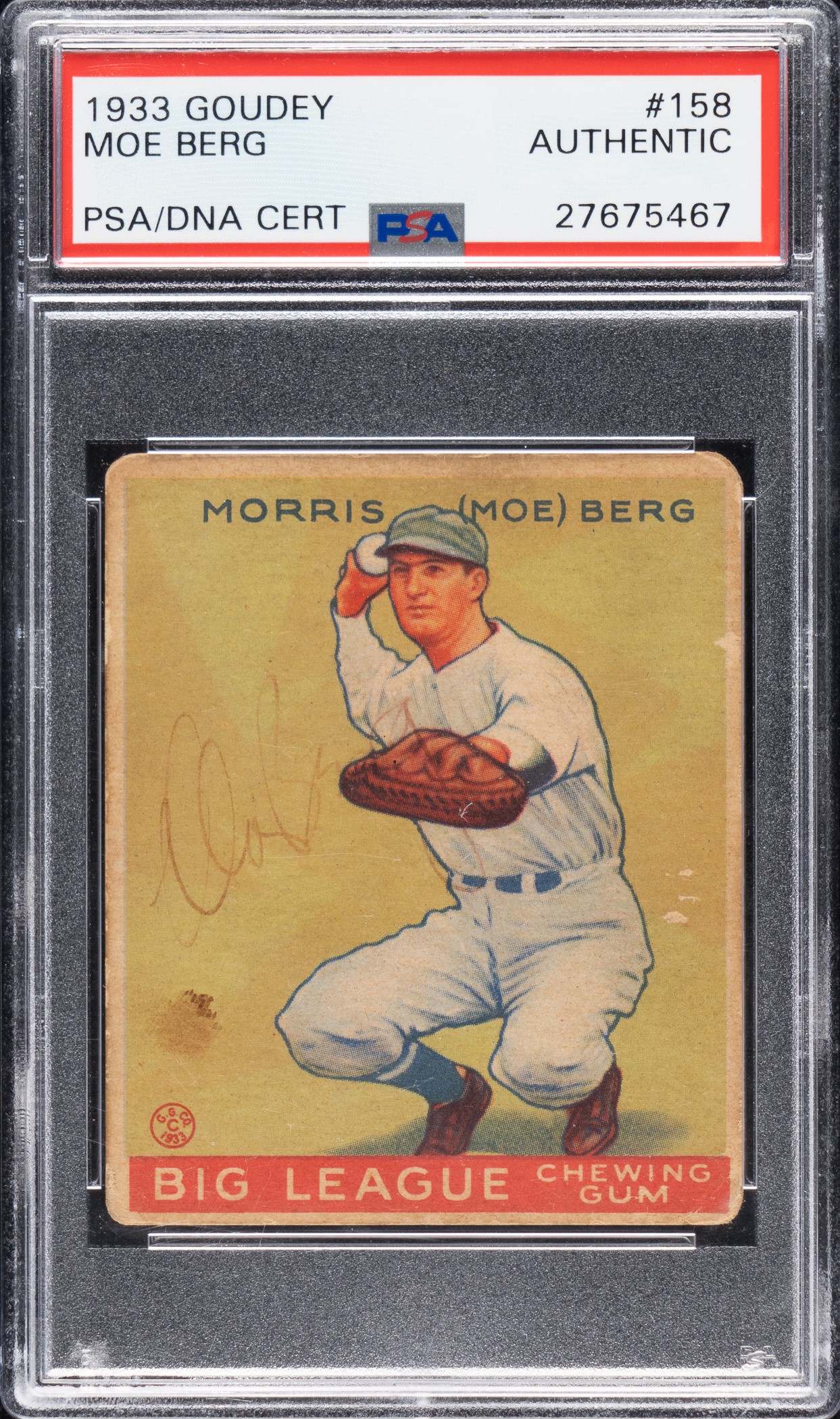 Signed 1933 R319 Goudey #158 Moe Berg - PSA/DNA and JSA