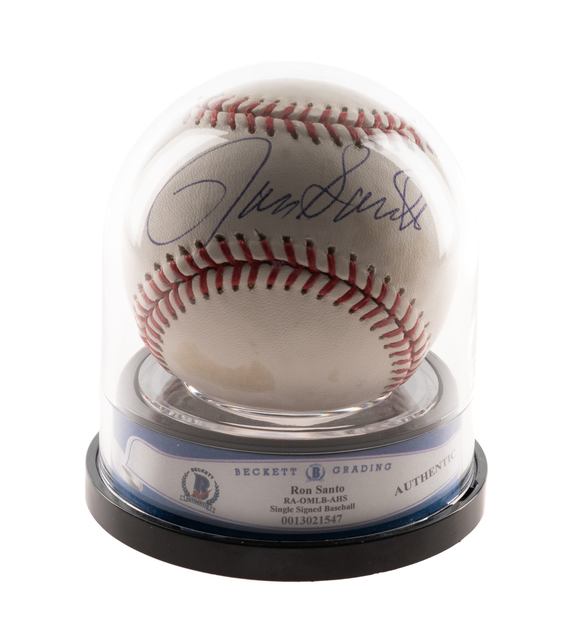 Chicago Cubs Hall of Famer Ron Santo signed baseball. Authenticated by Beckett with a basic certification. Reserve $10.