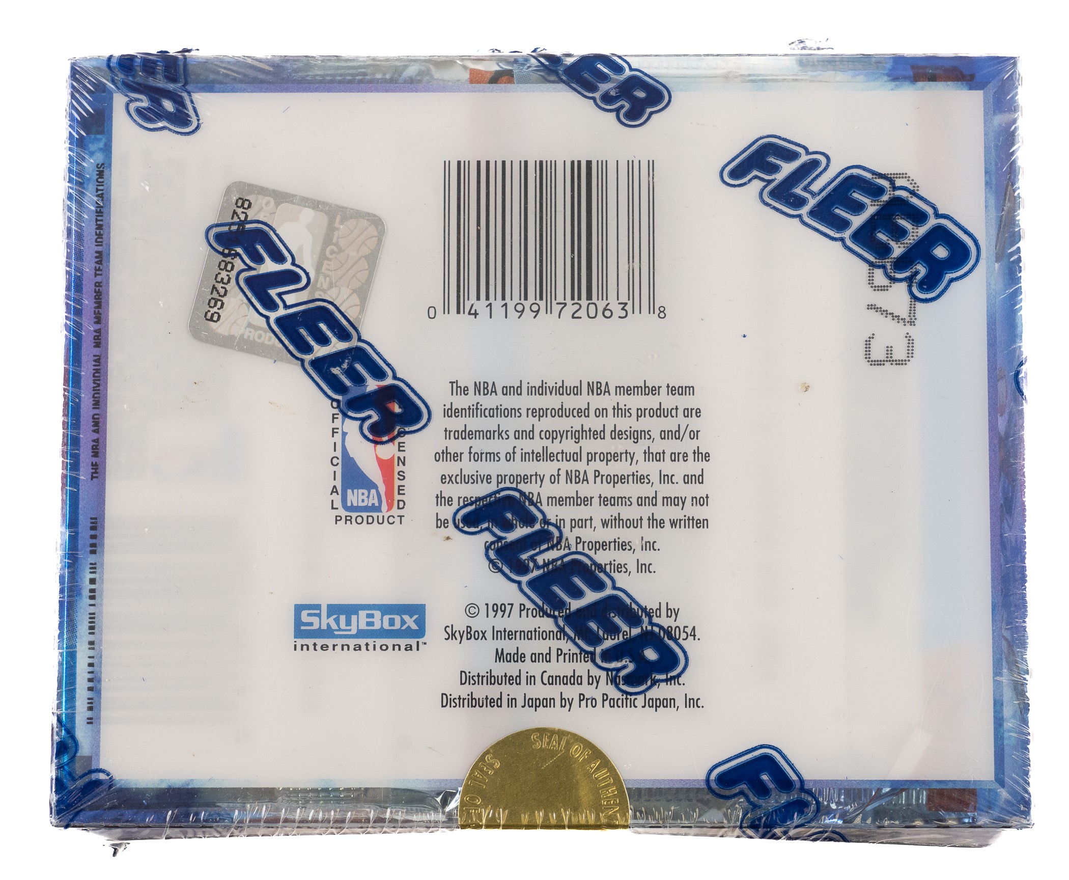 Presented is an unopened 1996-1997 Skybox E-X 2000 Basketball factory-sealed hobby box containing 24 packs and two cards per pack for a total of 48 cards. The key to this set is the rookie card of Kobe Bryant, as well as the rookie cards of Allen Iverson, Ray Allen, and Steve Nash. Also included within the series are limited parallels, desirable inserts, and autographed cards. While no guarantees can be made with respect to the grading of unopened material, there is the very real possibility that within these packs are Mint and Gem Mint examples of these cards and others. The box is wrapped in its original factory cellophane and displays light shelf wear. An outstanding unopened hobby box from this classic modern basketball issue. Reserve $10.
