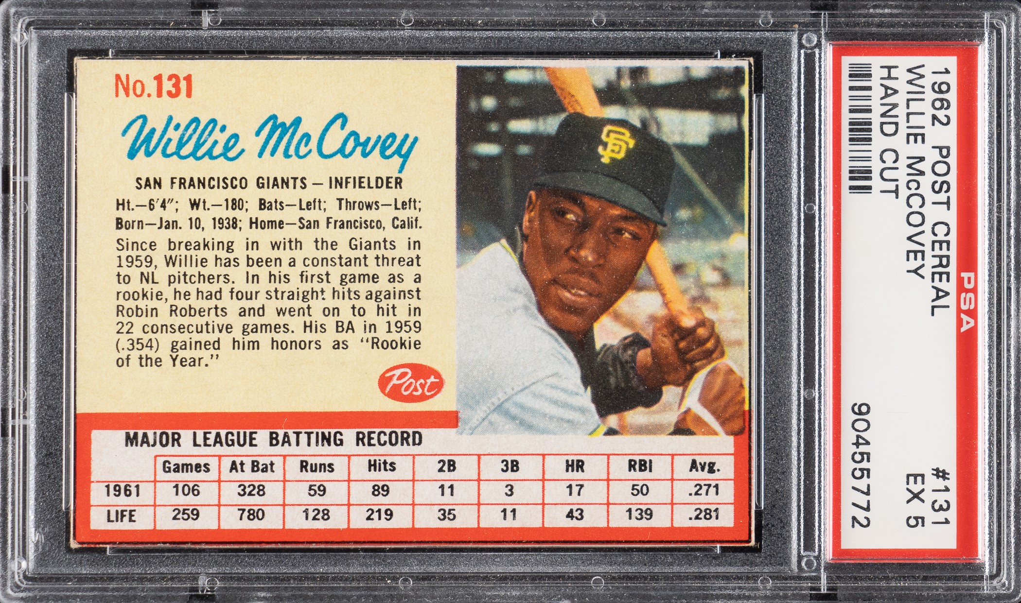 1962 Post Cereal #131 Willie McCovey PSA EX 5