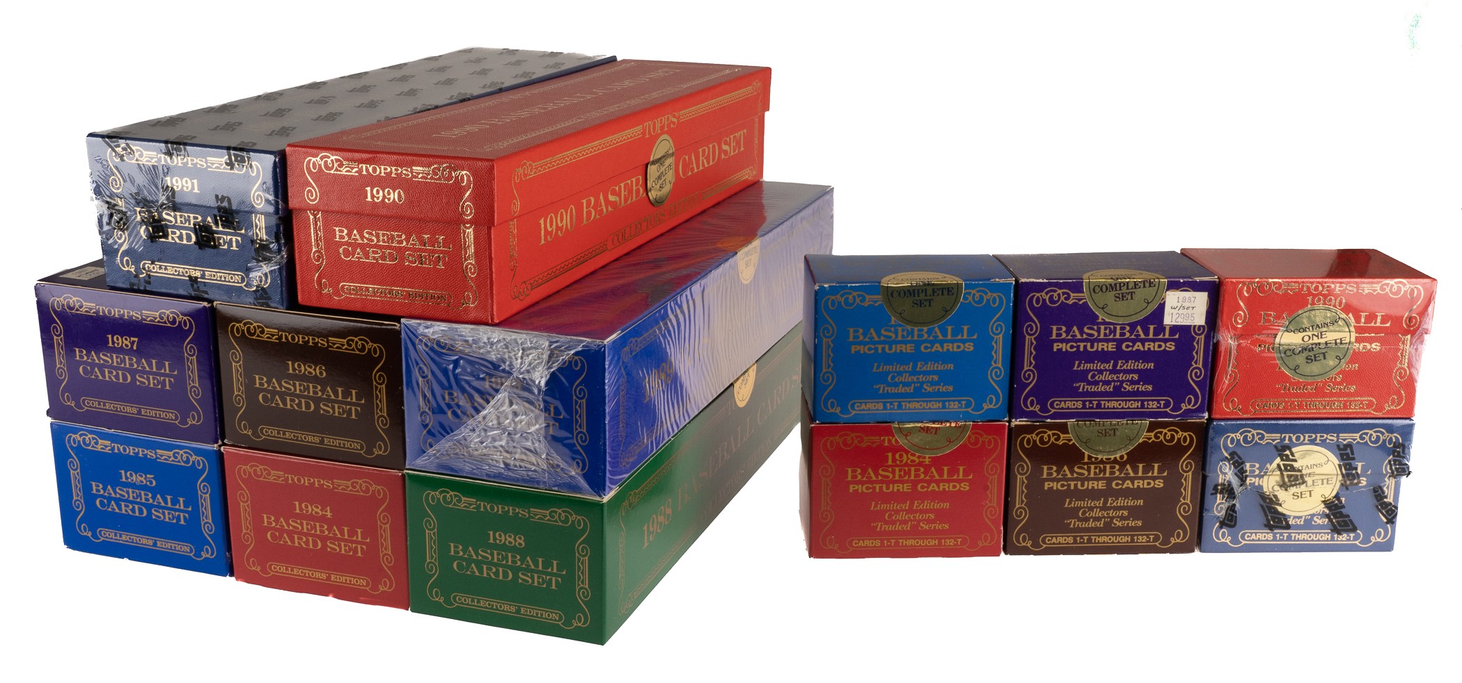 1984 to 1991 Topps and Topps Traded Tiffany Factory-Sealed Complete Set Collection (14)