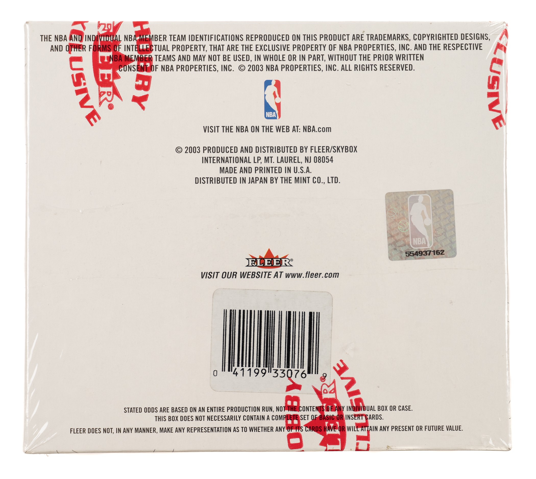 Presented is an unopened 2003-2004 Fleer E-X Basketball factory-sealed hobby box containing 20 packs and four cards per pack for a total of 80 cards. The key to this set is the rookie card of LeBron James, as well as rookie cards of Dwyane Wade, Carmelo Anthony, and Chris Bosh. The set also contains a number of desirable parallel and insert cards. While no guarantees can be made with respect to the grading of unopened material, there is the very real possibility that within these packs are Mint and Gem Mint cards. The box is wrapped in its original factory cellophane and is in Near Mint condition. An outstanding unopened hobby box from this classic modern basketball issue. Reserve $1,000.