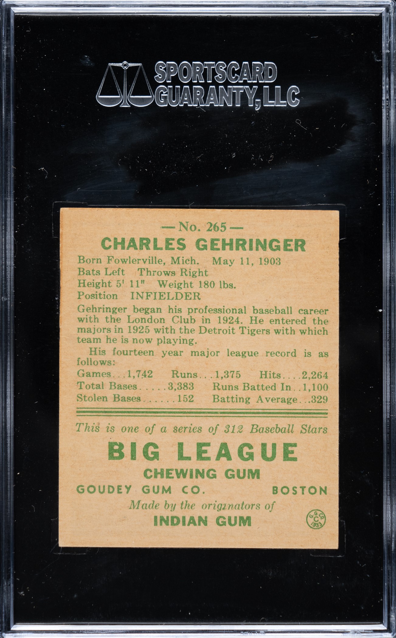 1938 R323 Goudey "Heads-Up" #265 Charlie Gehringer SGC EX/NM 80