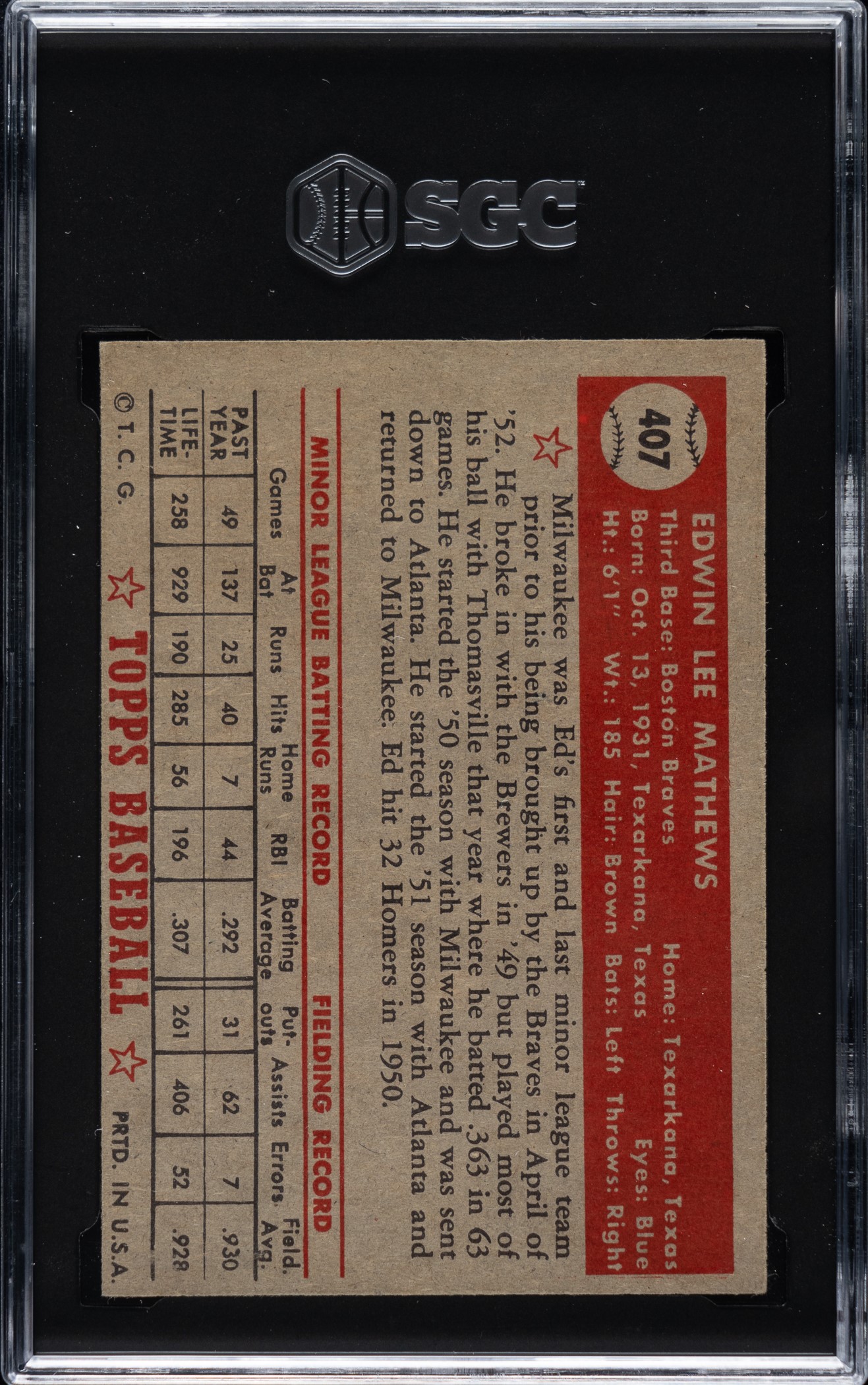 1952 Topps #407 Ed Mathews Rookie High Number SGC NM 7