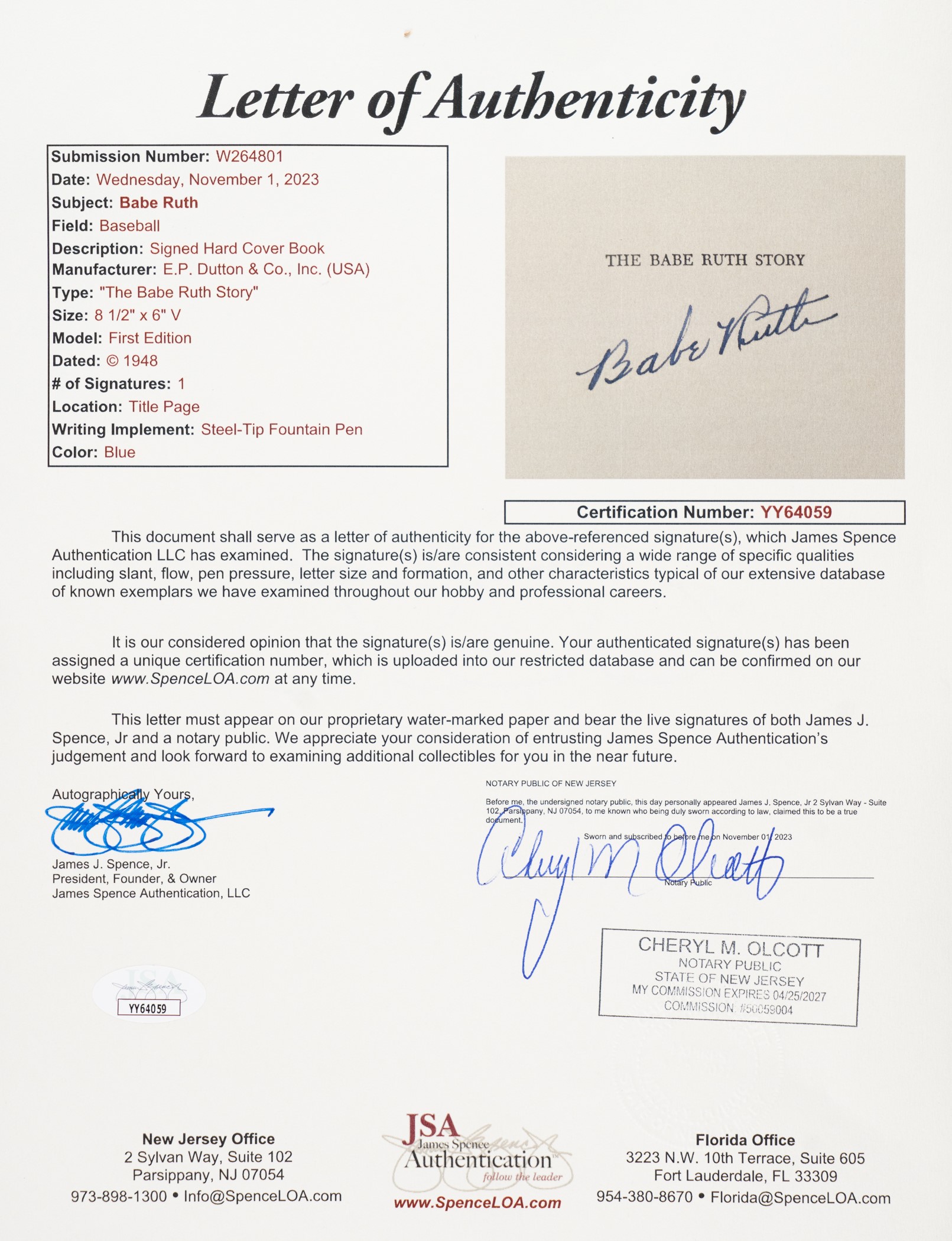 1948 First Edition of The Babe Ruth Story Signed by Babe Ruth - JSA