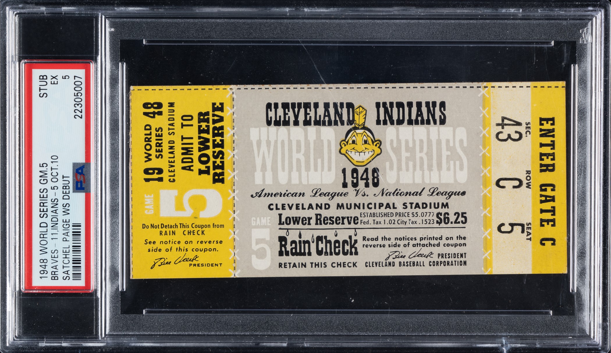 1948 Cleveland Indians (vs. Boston Braves) World Series Game 5 Ticket Stub PSA EX 5 - Satchel Paige World Series Debut