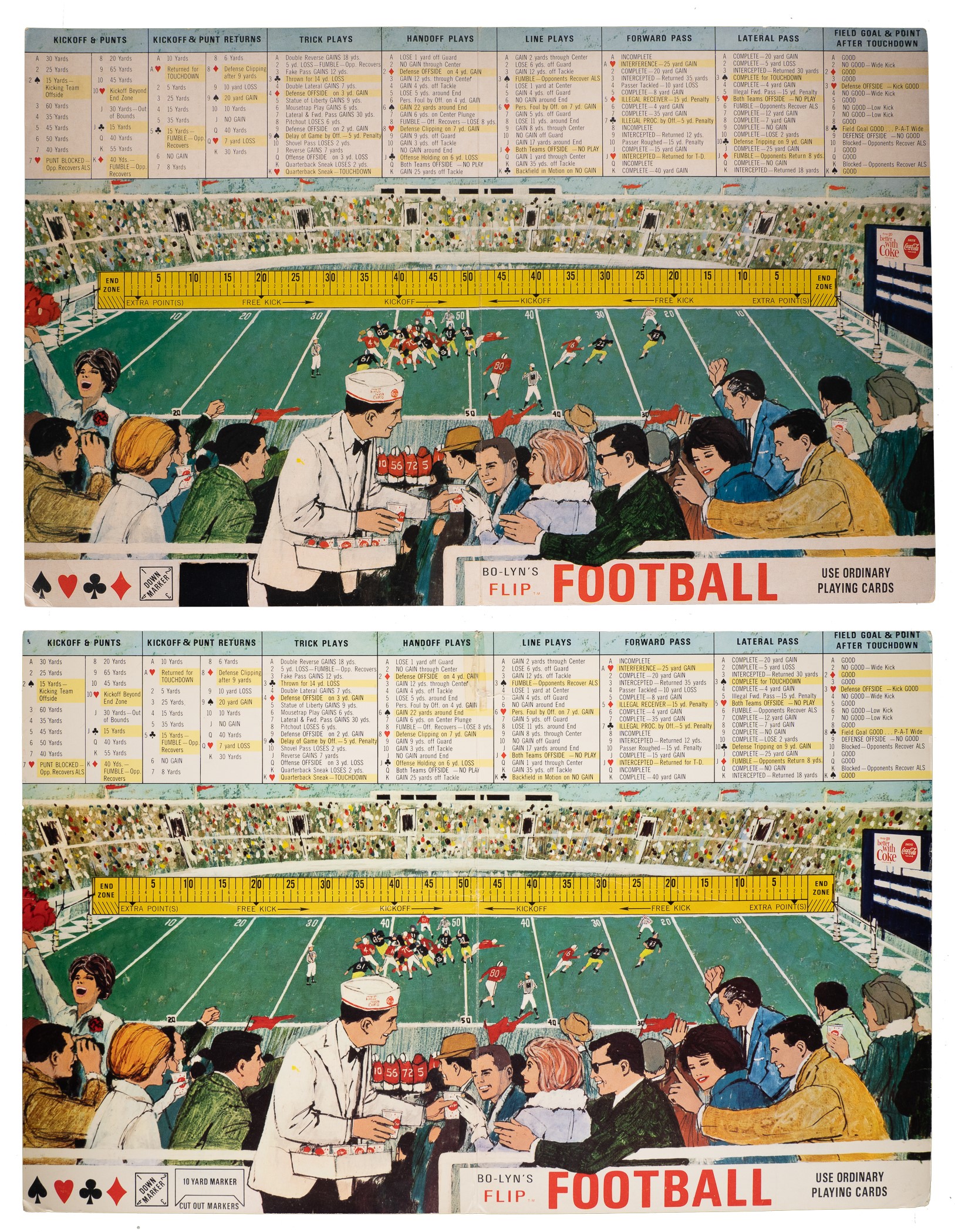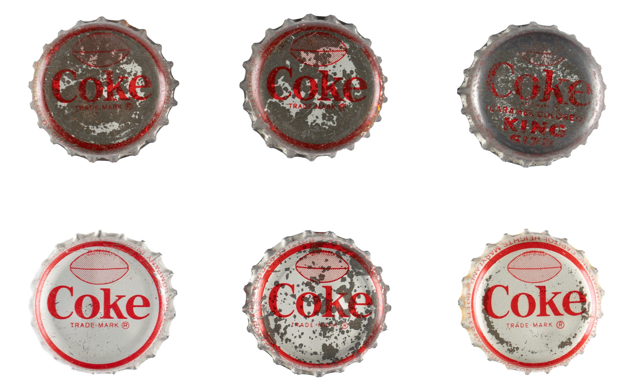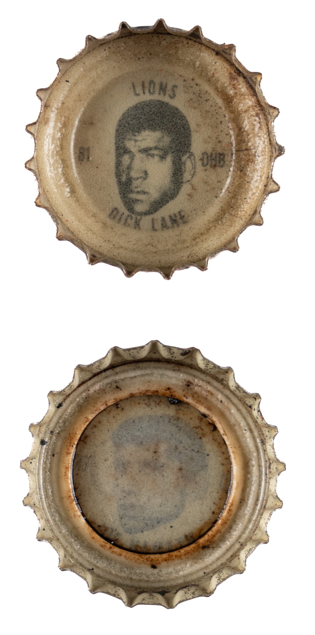 Tremendous collection of 631 assorted (621 different) Coca-Cola bottle caps spanning the years 1964 to 1966, all of which feature a portrait image of a football player on the underside. Each player is identified in print below his image, with the team name above. Condition ranges from Pr to Vg-Ex (averaging Gd-Vg), with some better. Seventy of the bottle caps have been affixed with glue to a Coca-Cola "Score with the Pros" board designed for that purpose. This collection consists of the following: 1) 1964 All-Star Complete Set (44). 2) 1964 Bears (10): Petitbon, Whitsell, Galimore, L. Morris, J. Morris, Karras, Leggett, Barnett, Johnson, and Bradovich. 3) 1964 Browns (30): Jim Brown, Ninowski, Webb, Scales, Parker, Ryan, Benz, Gain, Glass, Warfield, Wooten, Franklin, Hickerson, John Brown, Kanicki, Shorter, Groza, Truax, Lucci, Parrish, Fiss, Beach, Costello, Collins, Fichtner, Green, Morrow, Clark, Hutchinson, and Brewer. 4) 1964 Lions Partial Set (18/35): Barr, Brown, Clark, Gaubatz, Lions Logo, Lane, LaRose, Lary, Lewis, Morrall, Scholtz, Smith, Studstill, Vargo, Watkins, Whitlow, and Williams. 5) 1964 Redskins (7): Budd, Carr, Sample, Taylor, Pellegrini, Williams, and Paluck. 6) 1964 Vikings (4): Tarkenton, Kassulke, Franckhauser, and Brown. 7) 1965 All-Star Complete Set (34). 8) 1965 Bears (12): Taylor, Morris, Pyle, Leclerc, Lee, Evey, George, Atkins, Arnett, Bivins, Cadile, and Bears Logo. 9) 1965 Giants (26): Koy, Mercein, Timberlake, Katcavage, Walker, Moran, Winter, Child, Patton, Morrison, Lynch, Larson, Slaby, Costello, Dess, Lasky, Pesonen, Scott, Shofner, James, Stynchula, Thurlow, Wheelwright, Bolin, Wood, and Giants Logo. 10) 1965 National NFL Partial Set (23/70): Walker, Paluck, Adderley, Lilly, Ballman, Promuto, Warfield, Roosevelt Brown, Roger Brown, Lary, Tingelhoff, Marchetti, Johnson, Barr, Ringo, Wood, Cross, Gregg, Browns Logo, Gordy, Schafrath, Krause, and Jurgensen. 11) 1965 Patriots Partial Set (16/36): St. Jean, Eisenhaur, Farmer, McKinnon, Garrett, Hunt, Oakes, Nance, Dee, Patriots Logo, Felt, Schmidt, Watson, Morris, Wilson, and Dukes. 12) 1965 Redskins Partial Set (23/36): Paluck, Cesares, Bredlove, Pellegrini, Hernandez, Taylor, Coia, Krause, Carr, Sanders, Steffen, Nisby, Izo, Promuto, Sample, Richter, Carpenter, Huff, Barnett, Hauss, Reger, Seals, and Rotgens. 13) 1965 Vikings Complete Set (36) Plus Two Duplicates: Includes two duplicates (#9 and 34). 14) 1965 Vikings Partial Set (17/36): Swain, Lacey, Marshall, Linden, Reichow, Flatley, Hawkins, Cox, Calland, Rose, Tarkenton, Phillips, Kirby, Winston, Jobko, Walden, and Prestel. 15) 1966 AFL Partial Set (18/34): Kemp, Bell, W. Brown, Buchanan, Cappelletti, Daniels, Frazier, Hadl, Hennigan, Holub, Johnson, Lincoln, Lowe, Maynard, Morris, Namath, Paulson, and Talamini. 16) 1966 All-Star Complete Set (34). 17) 1966 Bears Complete Set (36) Plus Seven Duplicates: Includes the following duplicates: #1, 5, 8, 10, 13, 17, and 27. 18) 1966 Browns Near-Complete Set (35/36) Plus One Duplicate: Missing cap #10 for completion. Includes one duplicate (#31). 19) 1966 Browns Partial Set (20/36): Brewer, Beach, Modzelewski, Houston, Lucci, Hutchinson, Morrow, Kanicki, Warfield, Johnson, Kelly, Fiss, Wooten, McNeil, Wiggin, Green, Williams, Parrish, Costello, and J. Brown. 20) 1966 Chiefs Partial Set (26/36): Missing the following ten caps for completion: #15, 21, 22, 25, 27, 28, 30 Taylor, 32, 33, and 34 Dawson. 21) 1966 Giants Complete Set (35). 22) 1966 Giants Near-Complete Set (31/36): Missing the following five caps for completion: #10, 13, 17, 30, and 31. 23) 1966 Jets Complete Set (35). 24) 1966 NFL All Stars Near-Complete Set (32/34): Missing two caps for completion: #39 and 55. 25) 1966 Patriots Partial Set (19/36): Buoniconti, Huarte, Cappelletti, Shonta, Felt, Eisenhauer, Fraser, St. Jean, Arrington, Patriots Logo, Long, Romeo, Neville, Graves, Johnson, Hennessey, Garron, Canale, and Graham. Also included are two "Bo-Lyn's Flip Football" game boards sponsored by Coca-Cola. One board has a tape repair at the vertical fold, otherwise presenting in Good condition. The second board has had a playing piece (not present) cut from the board, otherwise presenting in Very Good condition. Total: 631 bottle caps. The size/weight of this item requires that there will be an additional shipping charge for this lot. Opening Bid $300.