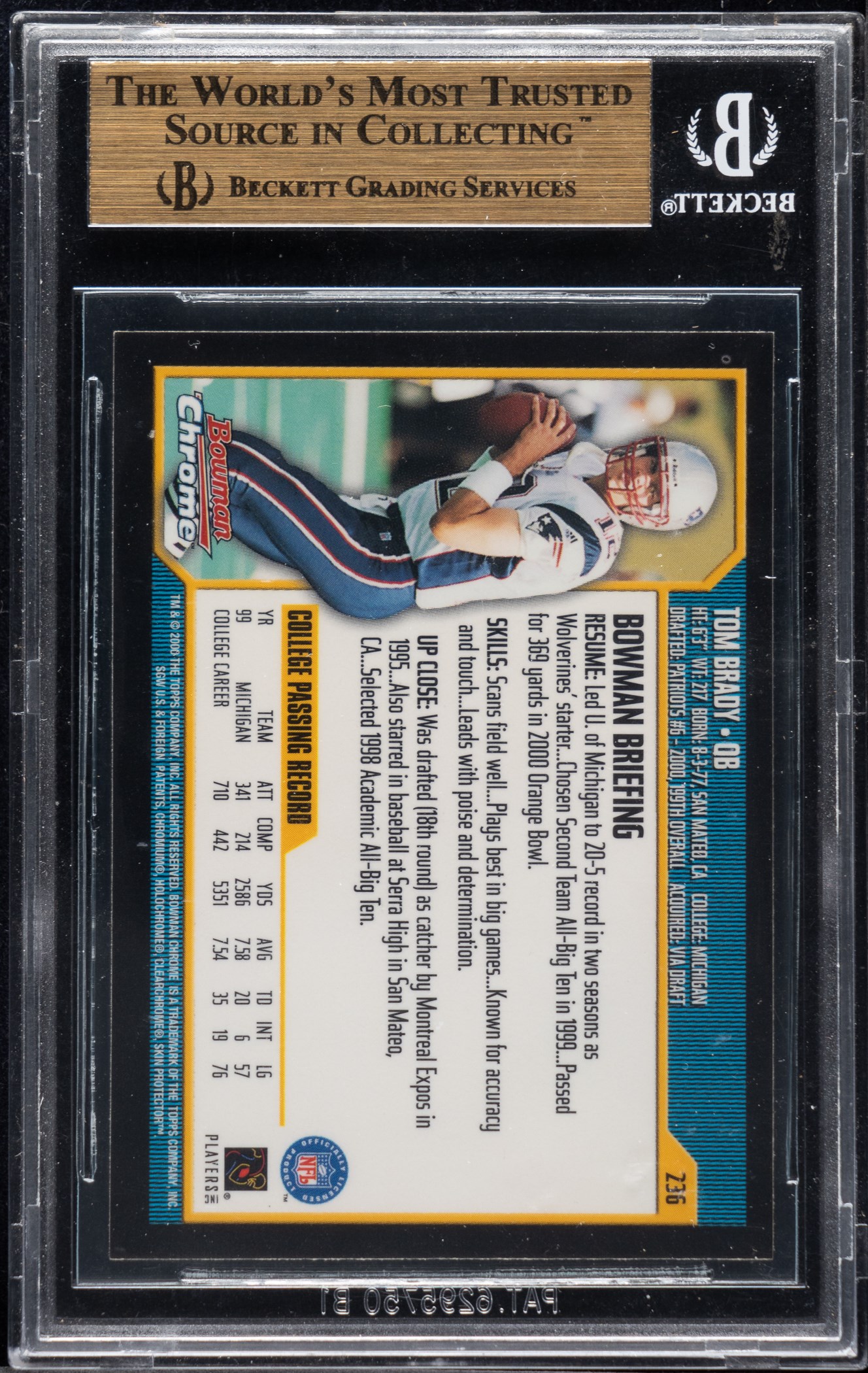 2000 Bowman Chrome Football #236 Tom Brady Rookie BGS GEM MINT 9.5