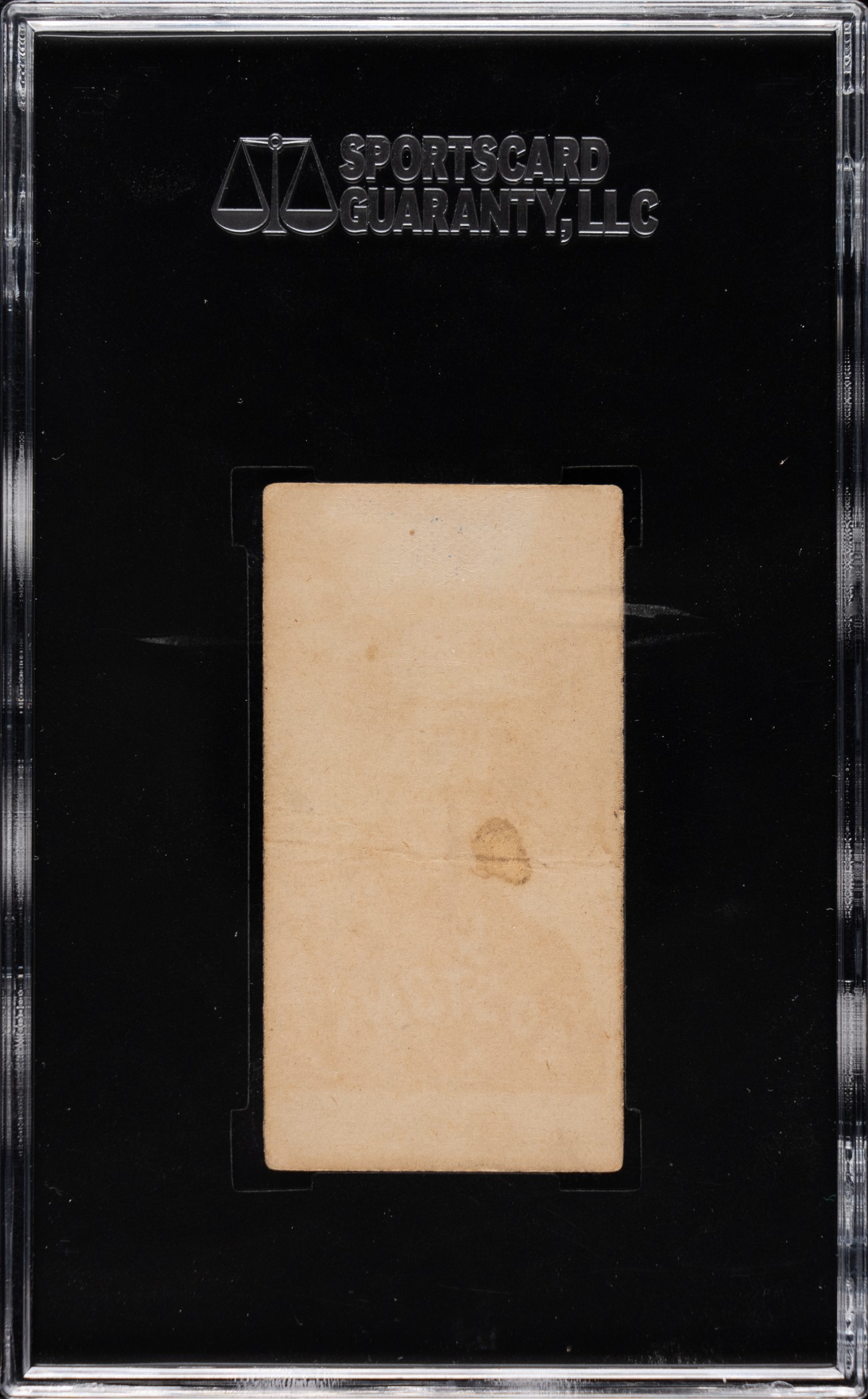 Graded GOOD+ 35 by SGC. 1888 N172 Old Judge portrait example of Cap Anson. The offered card features a striking portrait of the nineteenth century's greatest star. This example has superb image quality (photo quality is often light on Anson Old Judges) and honest corner wear. The blank reverse has a few wrinkles and a patch of light discoloration. Technically mid-grade but with a far stronger appearance, this is an extremely impressive N172 Cap Anson, one of the most important cards in the Old Judge set and one of the nineteenth century's most desirable cards. Opening Bid $1,000.