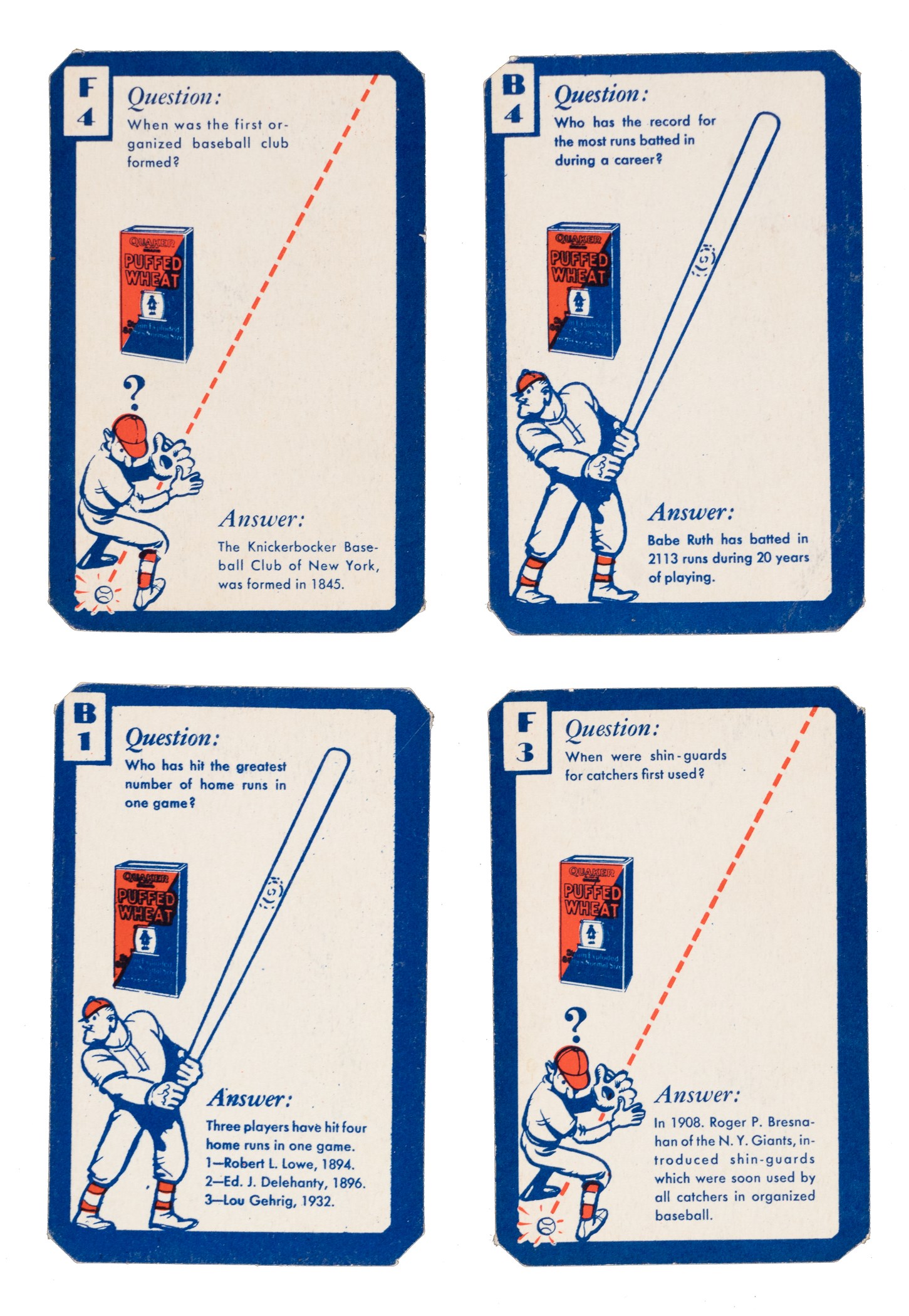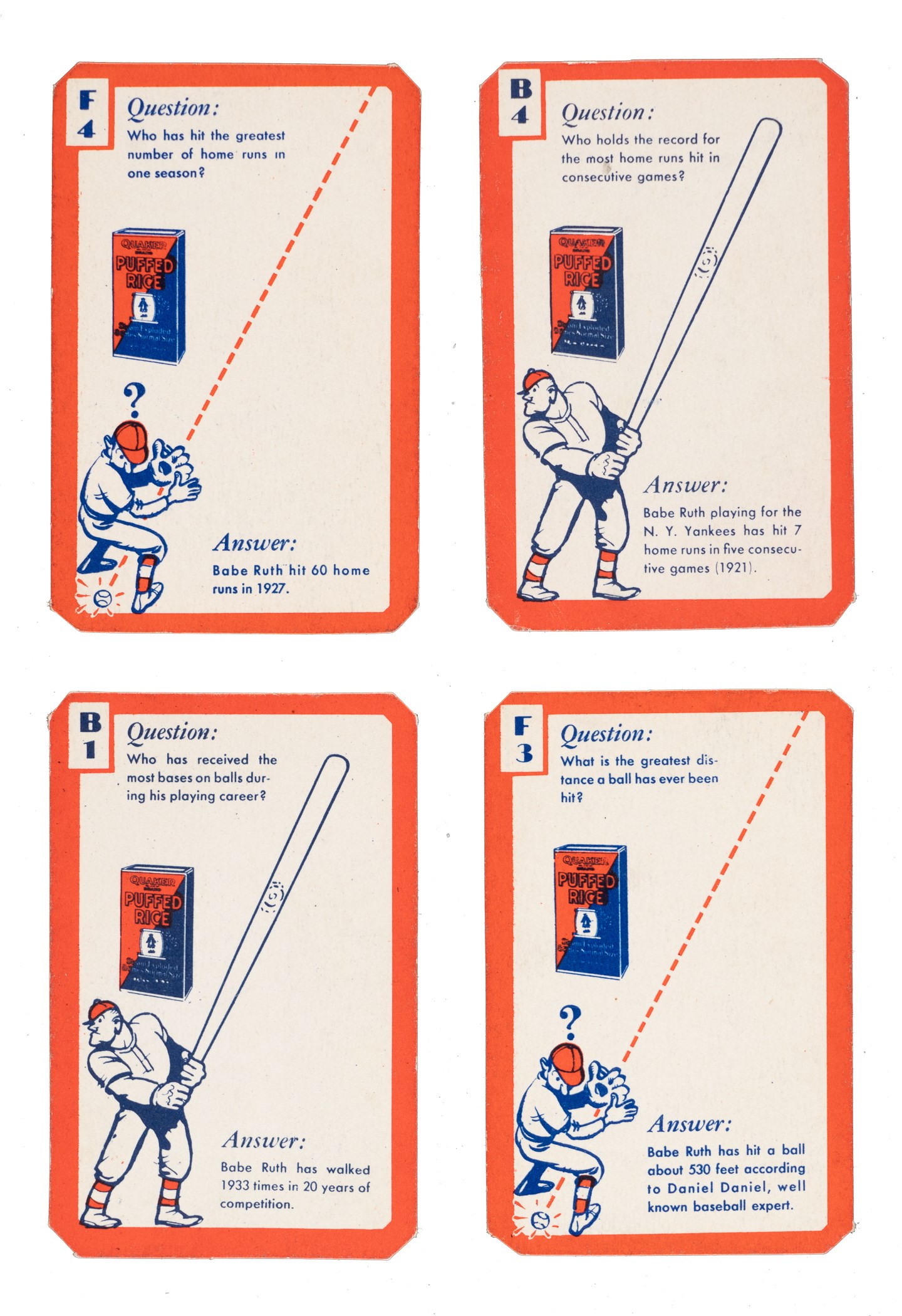 1934 Quaker Oats "Ask Me" Baseball Trivia Complete Set (26) Plus Instructions