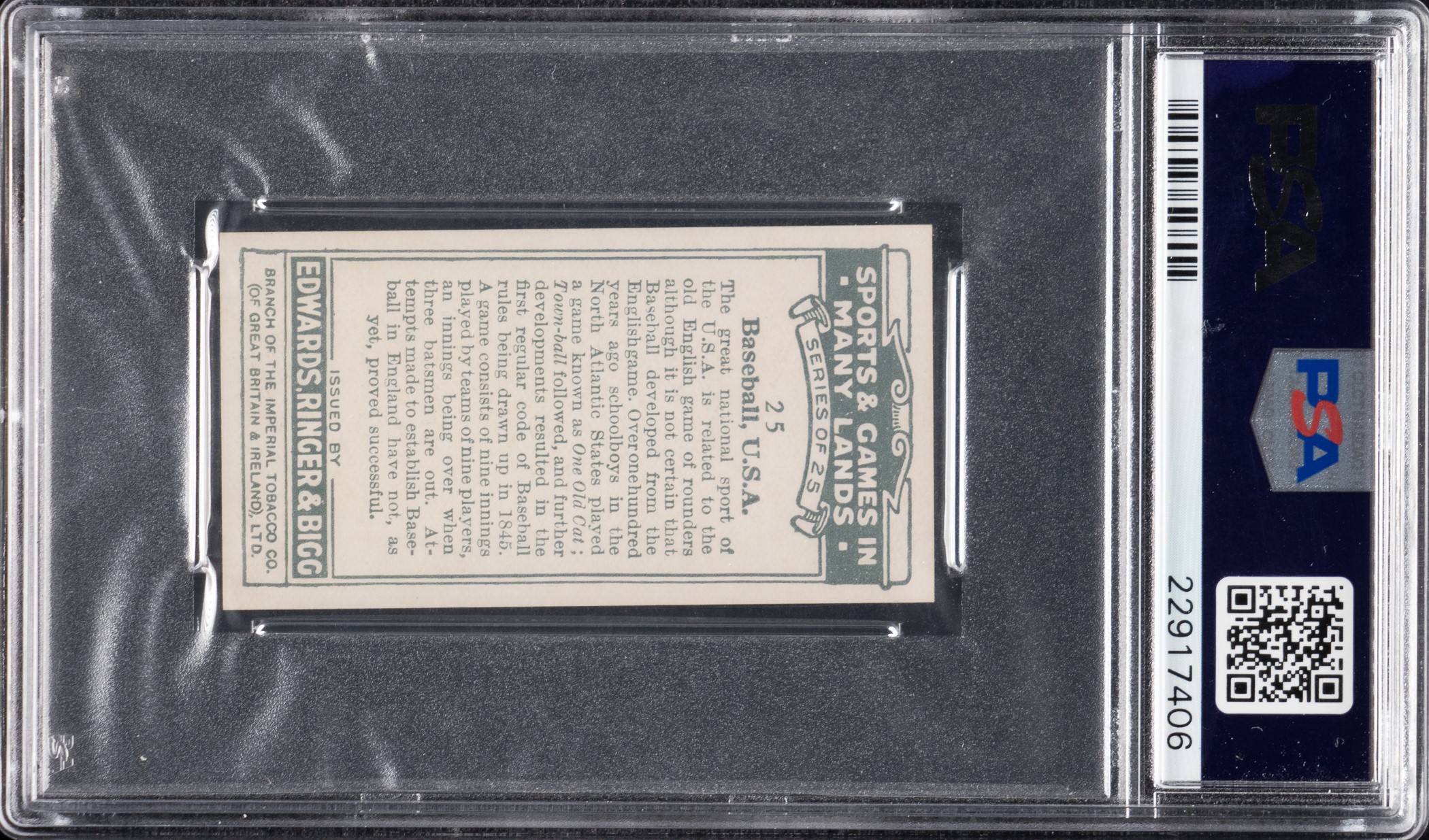 1935 Edwards, Ringer, & Bigg "Sports and Games in Many Lands" #25 Baseball with Babe Ruth PSA NM-MT 8