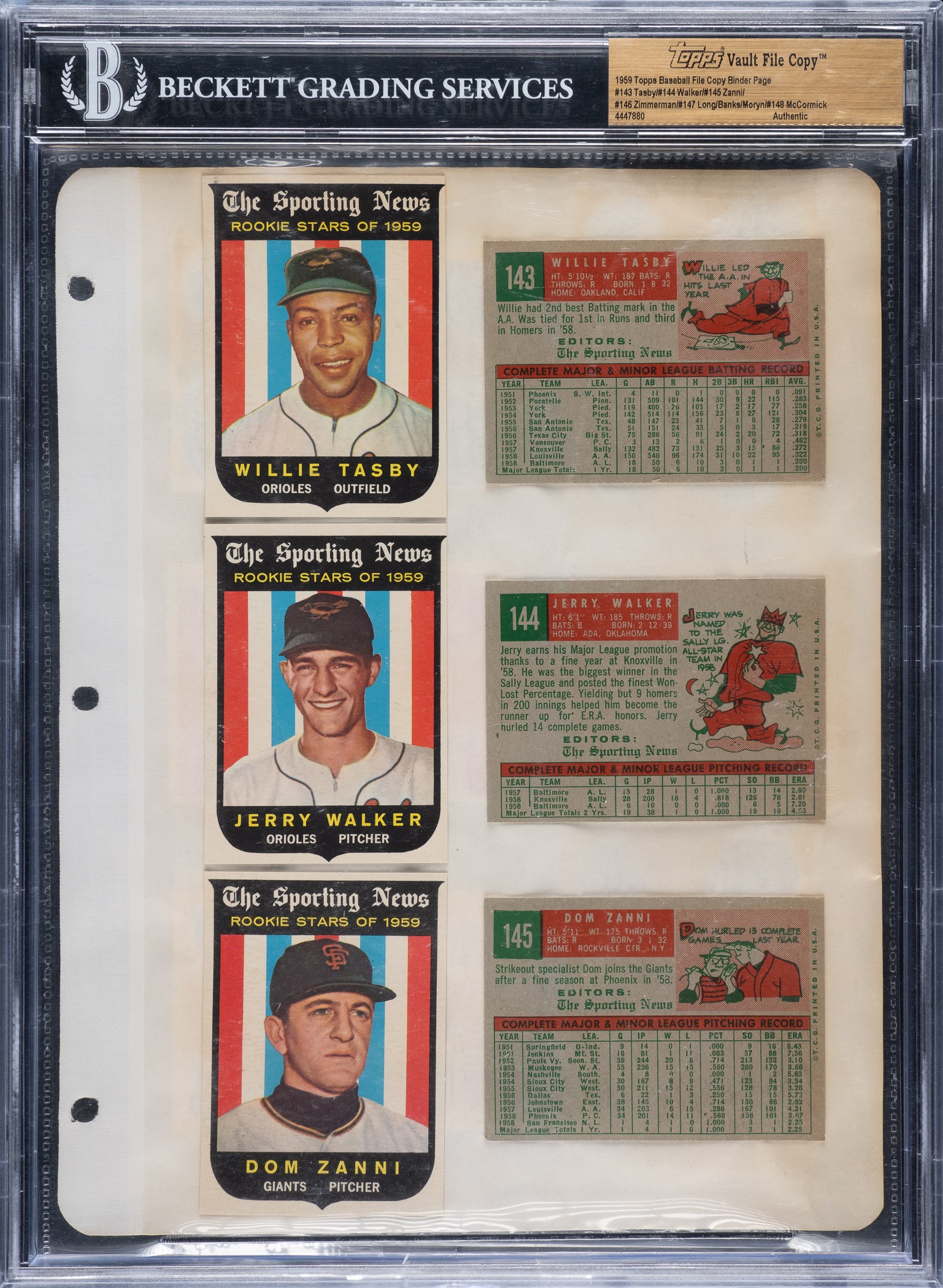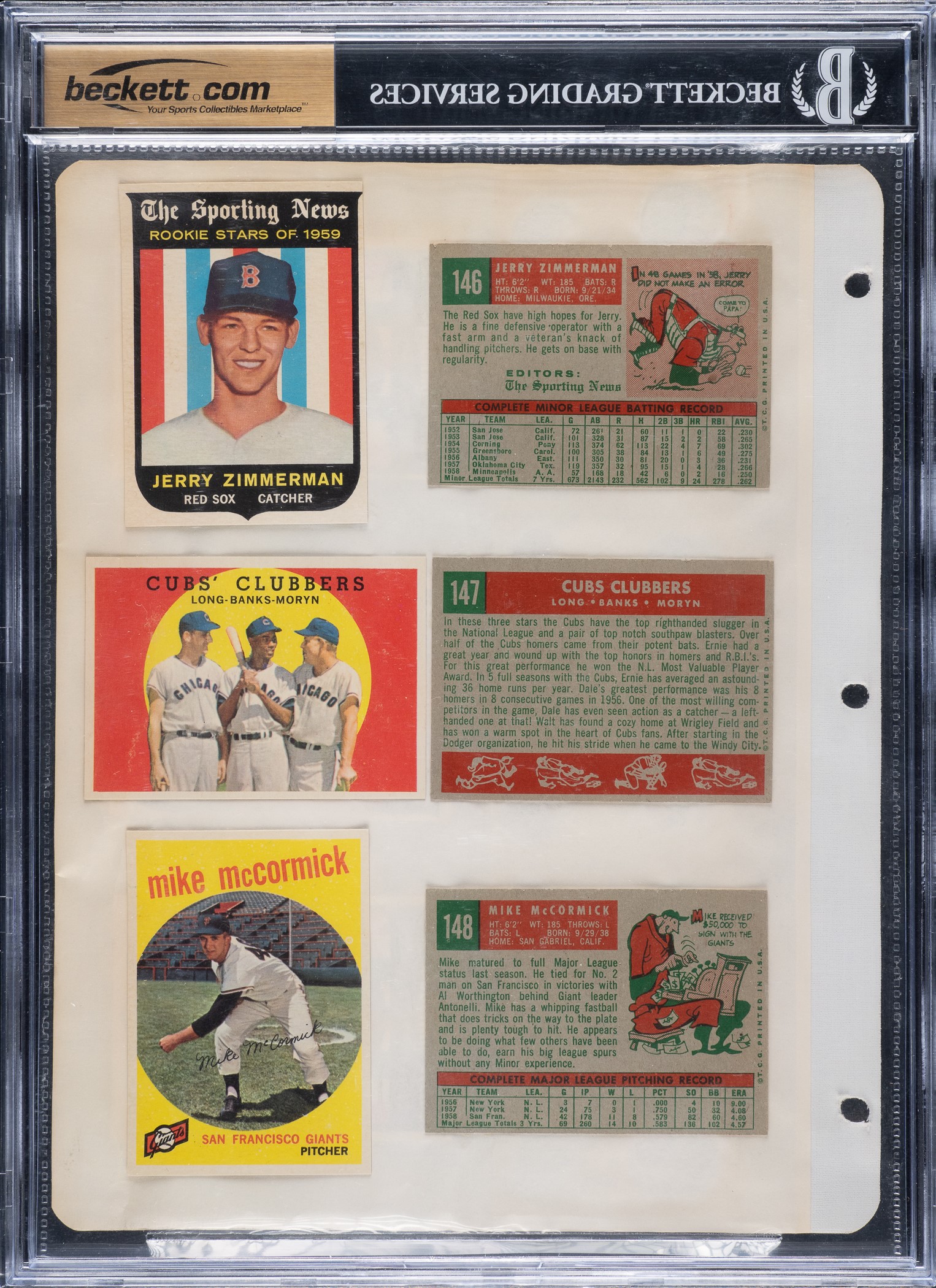 1959 Topps File Copy Binder Page with #147 Cubs Clubbers Ernie Banks - Beckett and Topps Vault