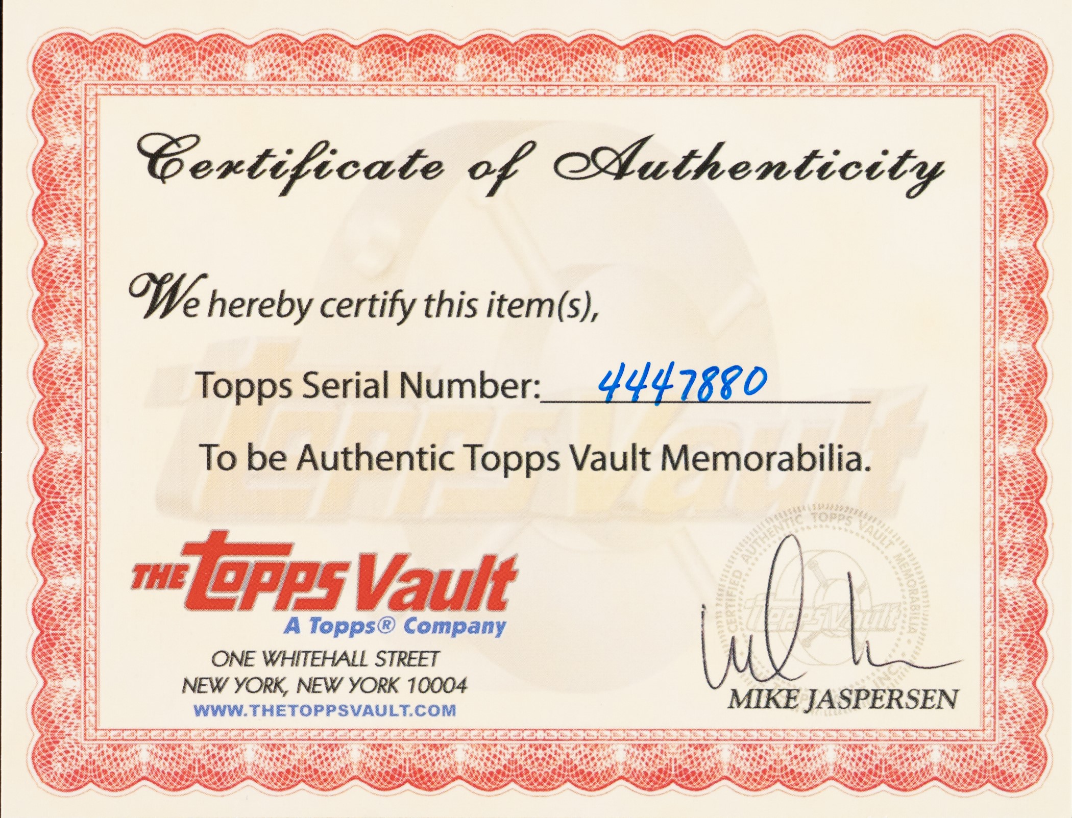 Graded Authentic by Beckett. Includes Topps Vault Certificate of Authenticity. Reserve $10.