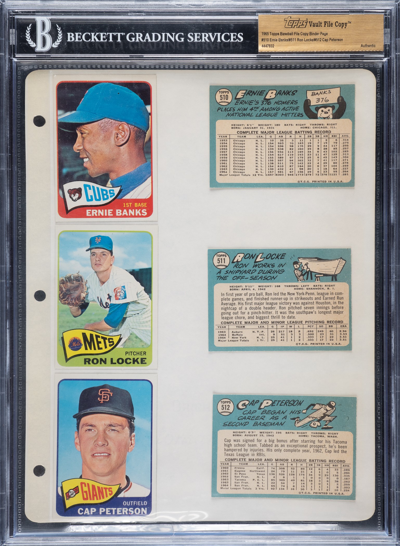 1965 Topps File Copy Binder Page with Ernie Banks - Beckett and Topps Vault