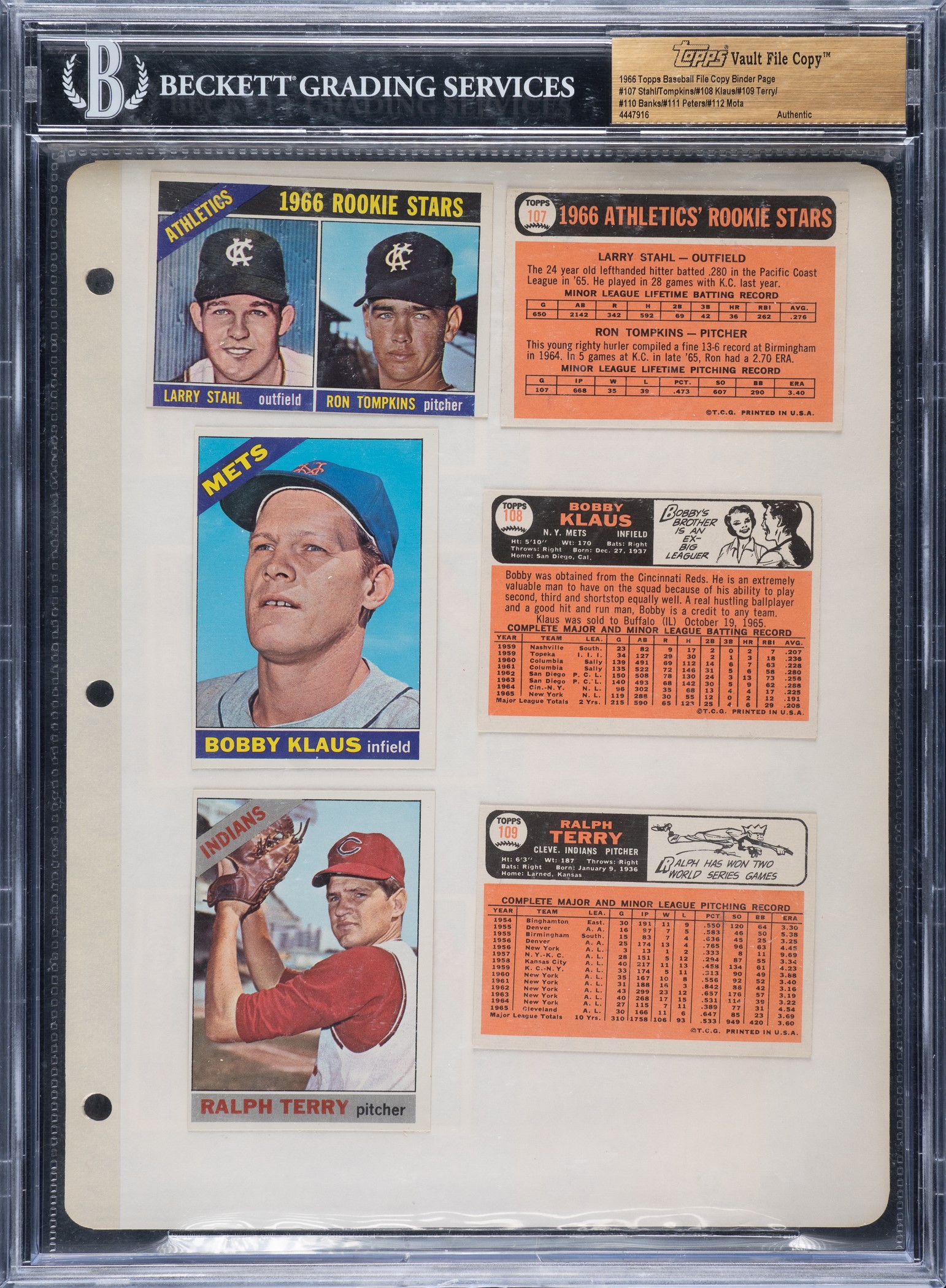 1966 Topps File Copy Binder Page with Ernie Banks - Beckett and Topps Vault