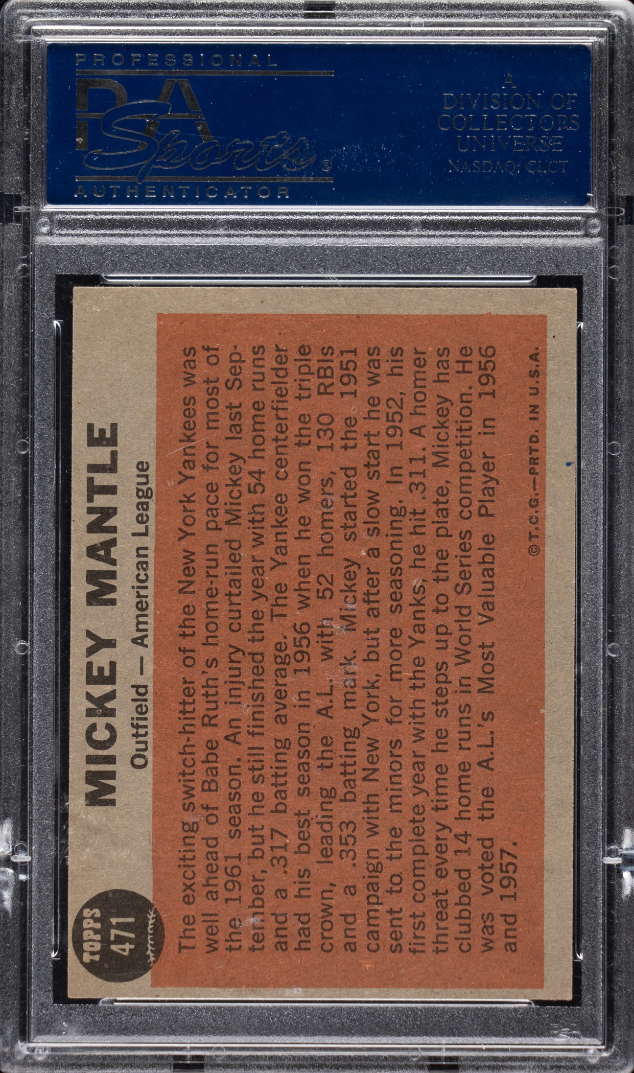 Graded EX-MT 6 by PSA. New York Yankees Hall of Famer Mickey Mantle. Opening Bid $10.