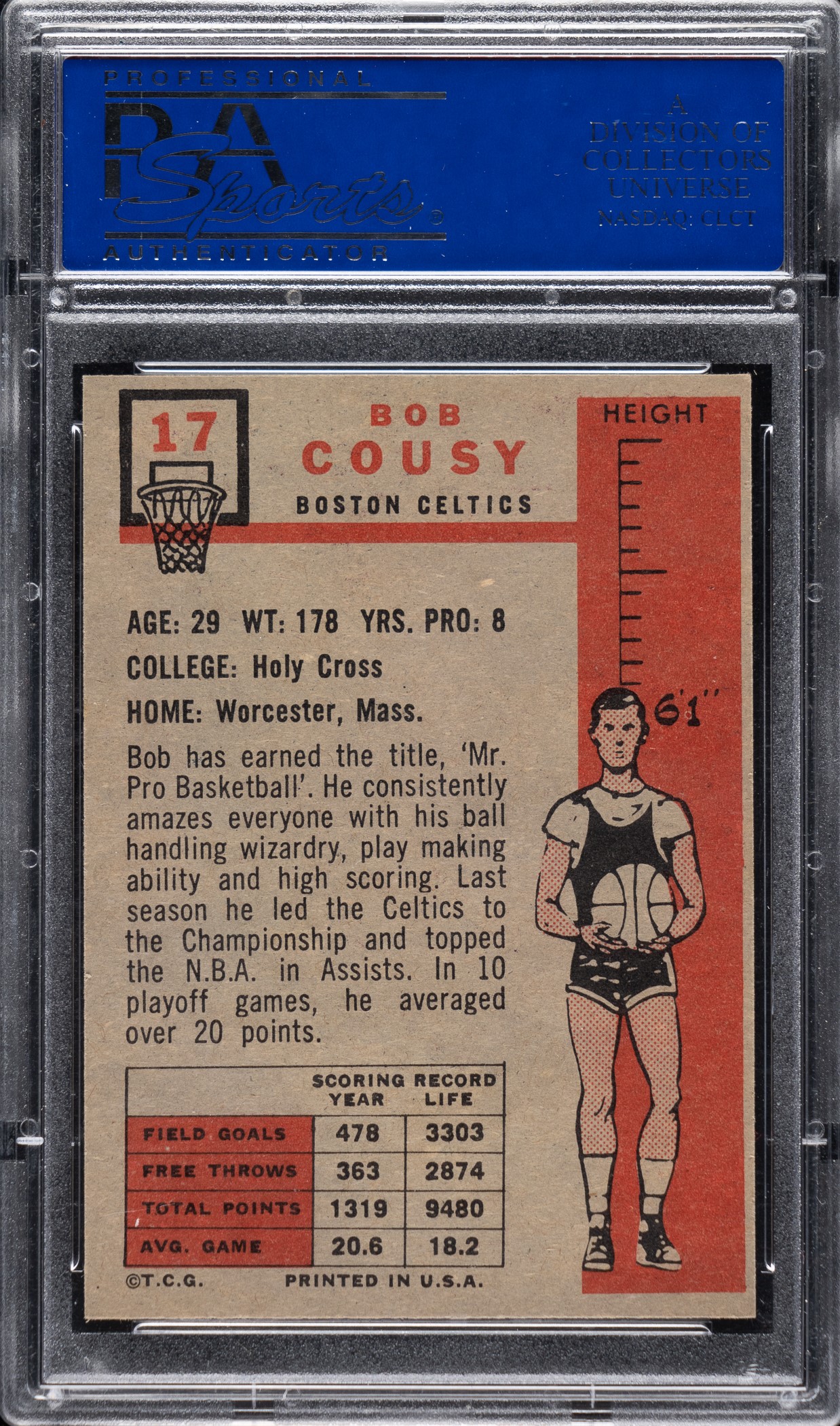 1957-1958 Topps Basketball #17 Bob Cousy Rookie PSA EX-MT 6
