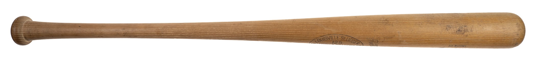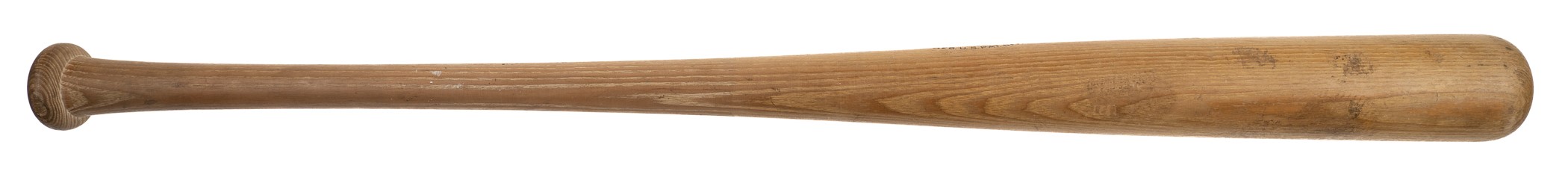 Hillerich & Bradsby Ted Williams store-model bat dating from the 1950s. The bat is stamped "125" in the center brand and features Williams' facsimile signature on the barrel. The knob features the model number "W188" and shows the number "4" written in black paint and the number "33" scripted in pencil. The bat, which is not cracked, has some surface scuffling on the barrel. Given the prohibitive cost of Ted Williams game-used bats, a store-model example often represents the next best alternative for those budget-conscious collectors wishing to add a vintage Williams bat to their collection. This is a very presentable example, which looks like the model Williams used during his career with the Red Sox. Length: 35 inches. Weight: 33 ounces. The size/weight of this item requires that there will be an additional shipping charge for this lot. Opening Bid $100.
