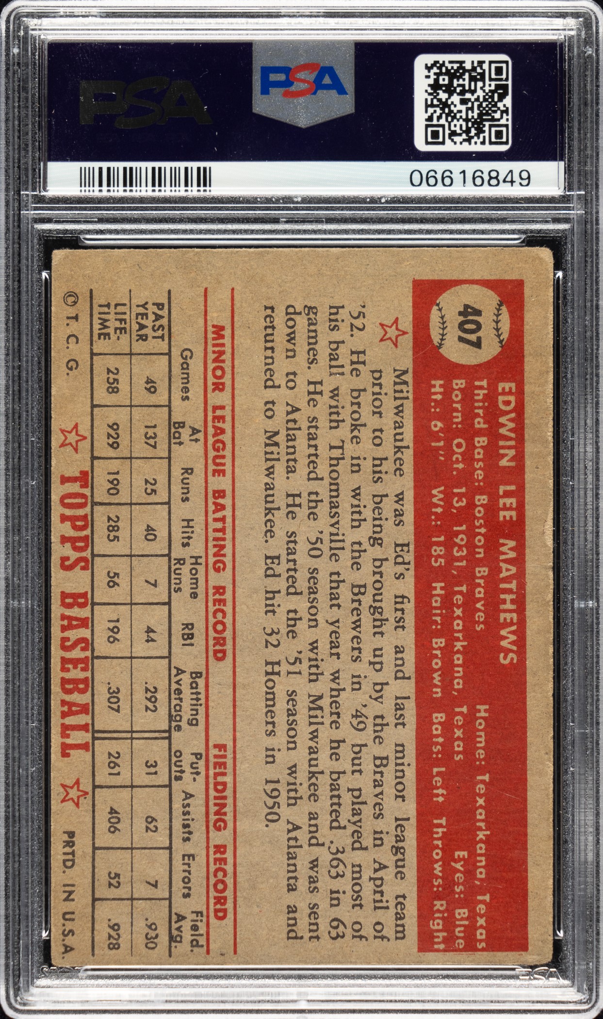 1952 Topps #407 Eddie Mathews Rookie High Number PSA VG-EX 4