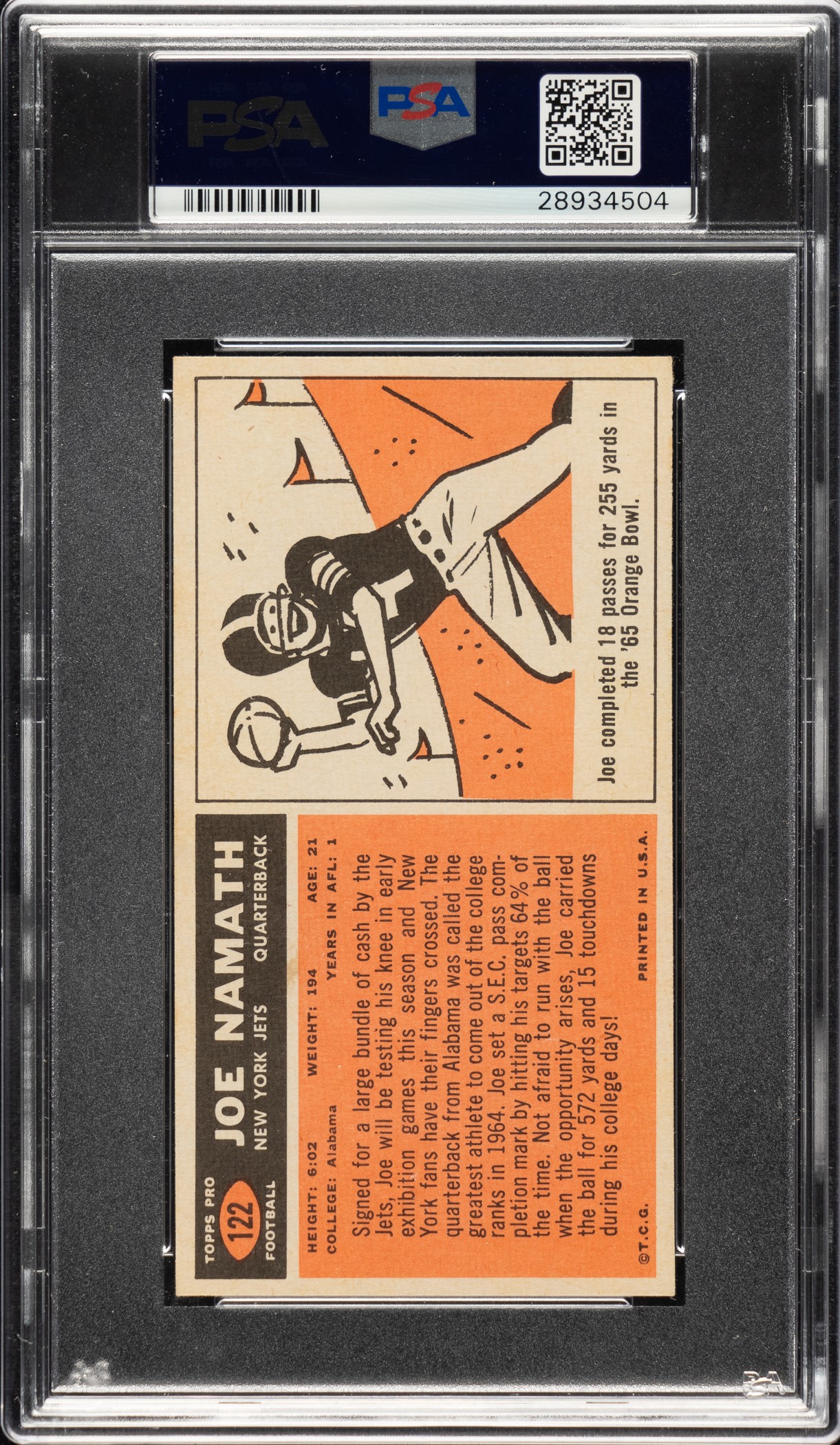 1965 Topps Football #122 Joe Namath Rookie PSA NM+ 7.5