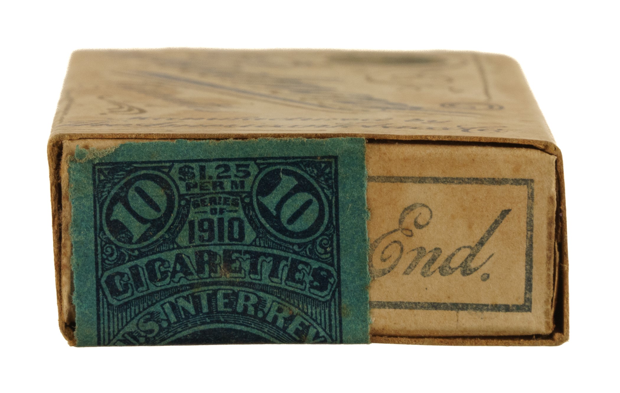 Presented is a newly discovered, original unopened pack of Piedmont cigarettes (Factory 25, Dist. VA.) dating from the era of T206 tobacco cards! This remarkable rarity was discovered recently at an estate in Richmond, Virginia, located ten miles away from the American Tobacco Company factory. Amazingly, the find featured a total of thirteen original packs, seven of which were still sealed and unopened (as offered here, no cellophane wrapper intact), while the remaining six were opened (tax stamp broken). Twelve of the thirteen packs are featured in this current auction. Our consignor is keeping one unopened pack for his personal collection.An unopened T206-era pack is FAR rarer than collectors realize. In fact, this is the first Piedmont example, with "The American Tobacco Co." printed on the side, we have ever offered! Over the years we have seen and been offered countless unopened tobacco packs (all turned down by REA, including numerous erroneously dated "graded" packs) that allegedly were from the T206 era and which, upon researching the actual dating of the packs, were from a more recent era. We have also seen numerous unopened packs offered for sale and at public auction elsewhere as possibly containing a T206 that, upon checking the packaging and with a little research, were simply NOT from the T206 era. This is just the second unopened Piedmont pack that we have ever seen, let alone handled, that actually dates from the era in which T206s were issued and could actually contain a T206 card! (As a point of reference, the first Piedmont pack example appeared as Lot 1786 in REA's Spring 2014 auction, realizing $8,888.) Could this unopened pack contain a Ty Cobb or Eddie Plank card, which were both included in Factory 25, 2nd Dist. VA. packs packaged in 1910 through 1911? We may never know, but it is a scarce and significant item, ideal for display, relating to baseball card-collecting’s premier tobacco-card issue. We should clarify that there is absolutely no guarantee that there is, in fact, a T206 inside this unopened Piedmont pack. There is really no way for us to know with certainty. It is even possible the pack includes a nonsport card.The tax stamp affixed to the end of the unopened pack dates from only 1910 to 1916, thus dating the pack with certainty to those years. This Piedmont pack is a "American Tobacco Company" pack. This attribute defines it as likely dating from 1910 or 1911. There is no overprint on the tax stamp, a fact that does not allow us to date the pack more narrowly than from 1910 to 1916 (all Piedmont packs from this span of years look exactly the same with the exception of a possible overprint that, if present, would allow for an even more precise dating), but we know with certainty that 1910, the second year of issue for T206 cards, is a possibility. For future reference for collectors, we note that at a glance one can determine if a pack is a 1909-1911 T206 era pack based on the number of cigarettes in the pack: The fact that this pack is a ten-cigarette pack, of course, is consistent with the pack dating from the T206 era (twelve-cigarette packs, which have been presented as T206 packs in the past, were not issued until 1917 or later). Lastly, we know that Piedmont Cigarettes, Factory 25, District Virginia cards were issued as part of the T206 series. These facts define the offered pack as one that could actually contain a T206 card in its original as-issued form!While collectors will appreciate this pack for its tremendous rarity regardless of its condition, the pack has miraculously survived in Excellent condition over the past century. Bright and clean, with only small tobacco stains visible, the pack remains firm and crisp. The tax stamp and slide are all fully intact. We would not recommend anyone purchasing this pack attempt to open it, as not only could this be very expensive, but the possibility exists for disappointment if there were no card at all or one were to wind up with a card from some nonsport tobacco-card set. This pack is special enough, unopened, as very possibly containing a Factory 25 T206 card (certainly one of the most probable we have ever seen). But if the winner does decide to open it, we hope they will document the event, perhaps doing it live or on video so that all interested collectors can share the experience. We are amazed at the rarity of a true T206 unopened pack and the fact that this is the first of its type we have ever encountered. This is a fascinating and exciting item for any advanced T206 or unopened-pack collector. Opening Bid $500.